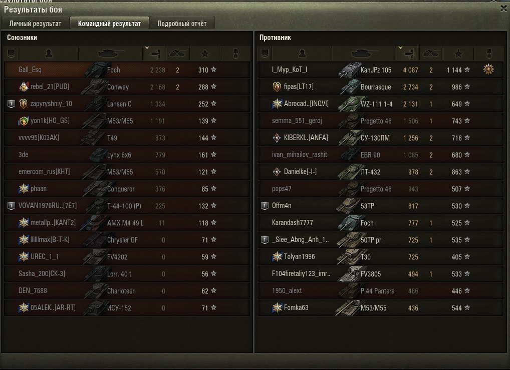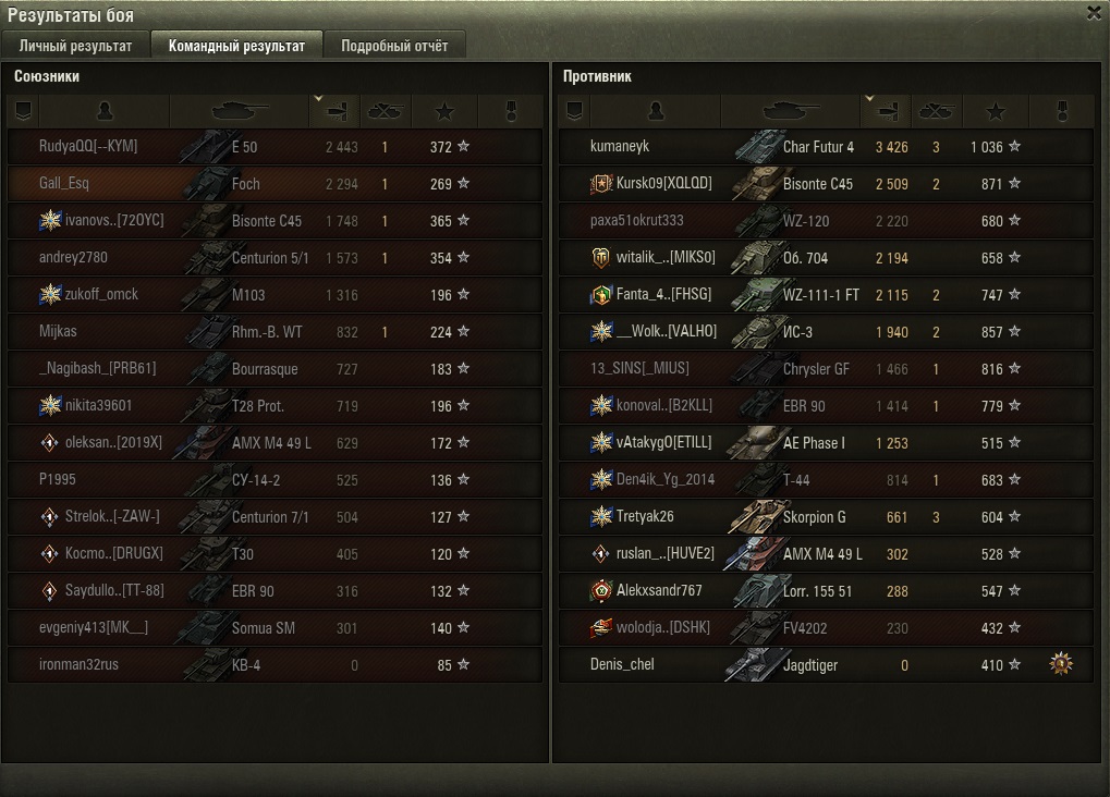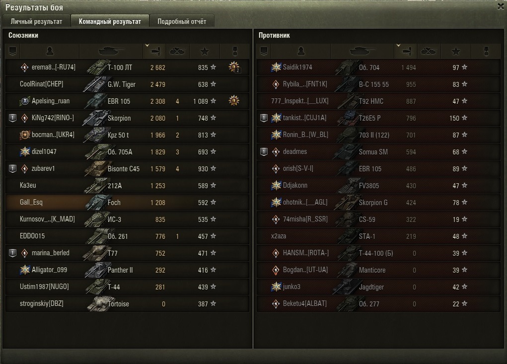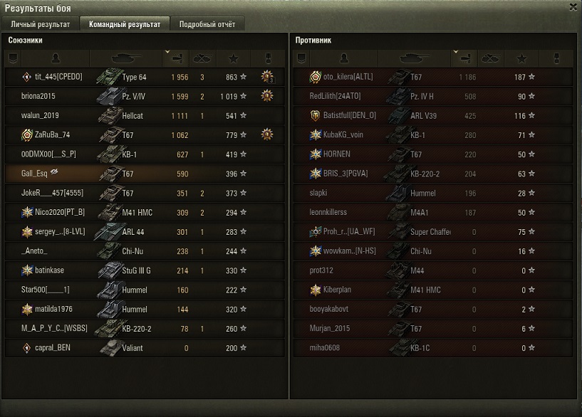 Два боя подряд... длительность 5-6 мин каждый... но как же они полярны... мда... во победном бою не успел разрядить второй барабан - противник кончился !!! вся моя команда попадала, пробивала, поджигала и взрывала... ну прям отряд супергероев Марвел... в проигрышном бою высадил 4 барабана (16 пулек) эффективность 6 пробитий, 1 рикошет, 2 не пробил (по СТ)... 7 - мимо (100-150м) - и это "...самое точное орудие среди всех ПТ 9 уровня... (с)" ахахахах ))) великая сила искусства рандома....