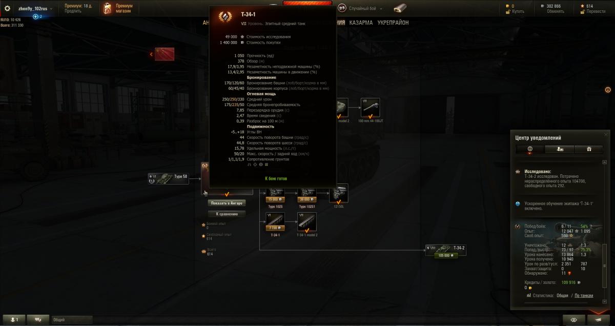4. Прокачал я значит танк, китайский ст 8 уровня т 34-2, на скрине видно сколько свободки ушло и своего опыта с танка, написано что танк элитный, включена ускоренная прокачка экипажа, а след танк закрыт.... *** картош? прекрати пож-ста, я не вынесу того что мне че по новой качать придется...