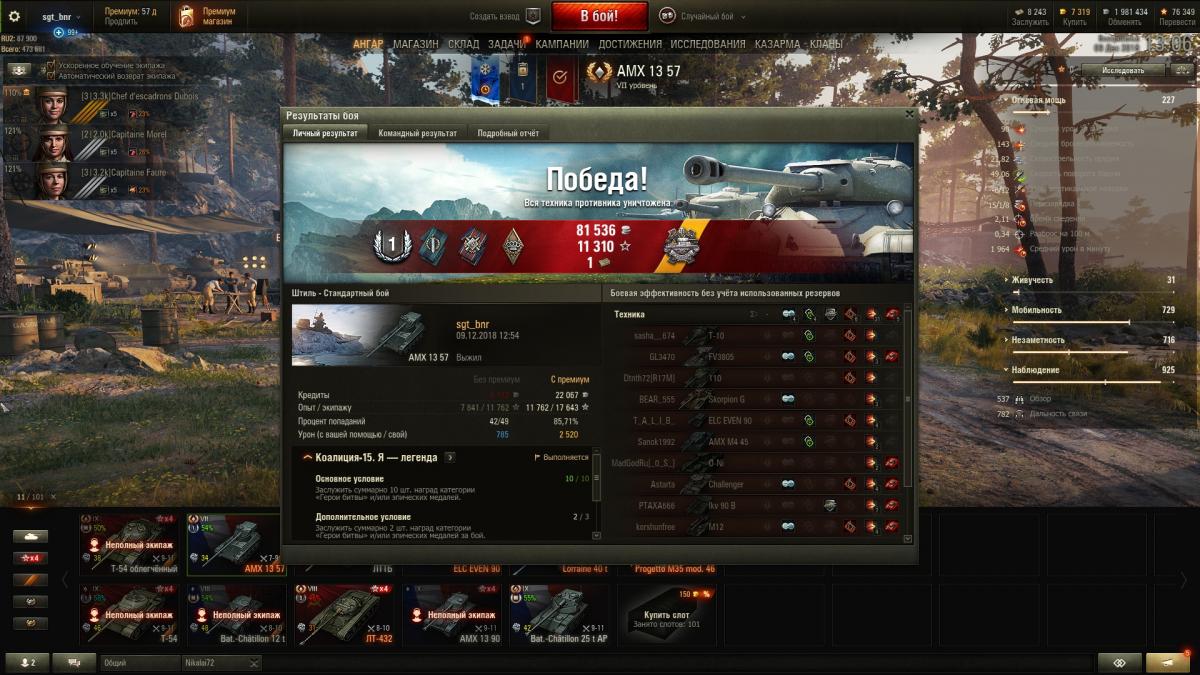 Всхвастну: Джедай-Мастер, 8 медалей, 4 значка, 1250 чистого опыта, 1280 урона Повезло, что противник решил не захватывать базу. Зря они так Последнего противника решил не искать, не рисковать, да и не догнал бы. Список регалий: «Воин», «Защитник», «Основной калибр», Медаль Колобанова, «Костолом», «Стальная cтена», «Дуэлянт», «Непробиваемый», «Невозмутимый», «Поджигатель», «Захватчик», Знак классности «Мастер» http://wotreplays.ru/site/11080144