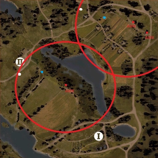 В который раз я с другом напарываюсь на одну и ту же ситуацию на карте малиновка. На других картах пока такого не замечал. Парочка "светил" пристраивается где-нибуть в кустах и их команда расстреливает всех в пух и прах..ну да, вроде бы все честно, НО взгляните на схему и скажите, откуда такая дальность обзора? ездил на Типе с "просветленной оптикой" Белая точка - место где убили моего друга (тоже тип. Умер, так и не увидев ни одного из стрелявших) Синяя точка - место откуда я заметил свет. ну и красные точки - в данном случае оказались АМХ раньше я еще видел Т-50. Проехав путь от трупа моего друга до места, обозначенного синей точкой на карте, я увидел ближайшего из "светил". в прицеле расстояние до него было 300 метров. Т.е. он мог видеть нас,когда мы были ещё на расстоянии 600-650 метров. Скажите, такая дальность обзора это нормально ??