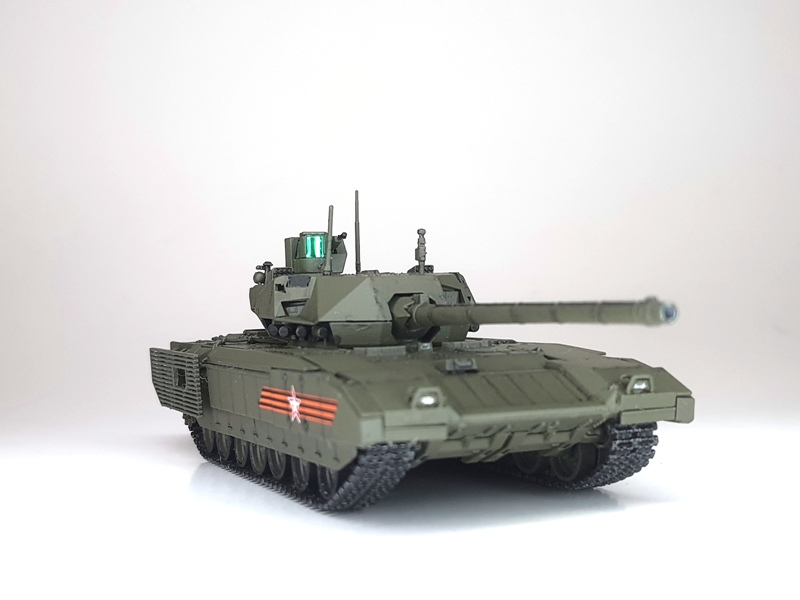 Т-14 "Армата" от "Звезды". Совсем не моя тема. Модель досталась мне уже в полусобранном состоянии - отдал коллега по работе, когда не совладал с инструкцией и зашел в тупик со сборкой. Пришлось помучиться. Что-то получилось разломать и исправить, что-то оставил как есть. Окраска - спрей "Звезда".