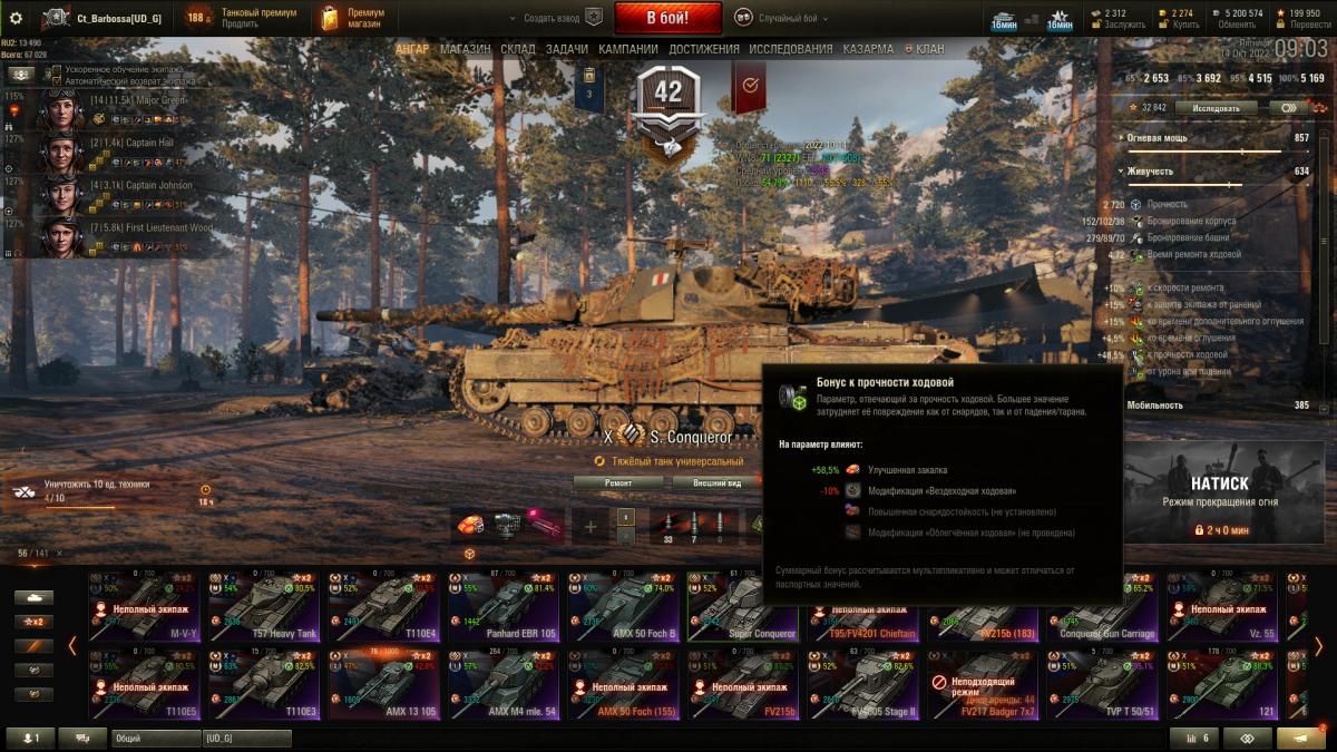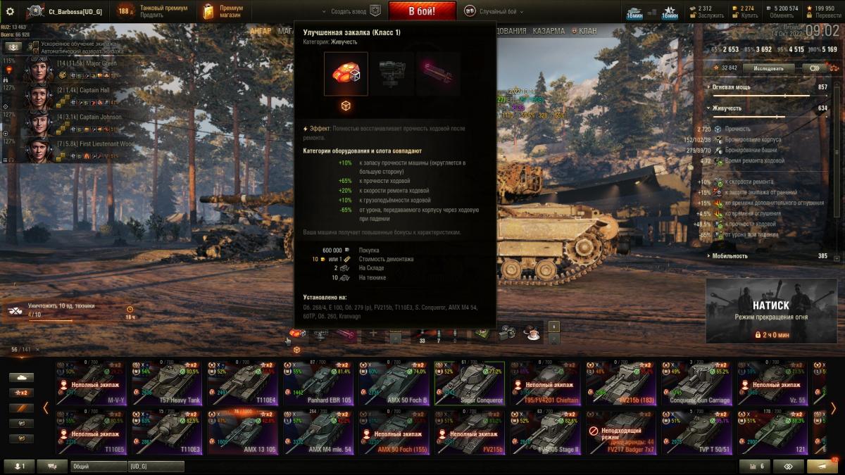 5. Добрый день ! Хочу уточнить почему бонус от оборудования "Улучшенная закалака" отображается по разному. В слоте указано что бонус к прочности ходовой 65% , а в ТТХ танка 58,5%.