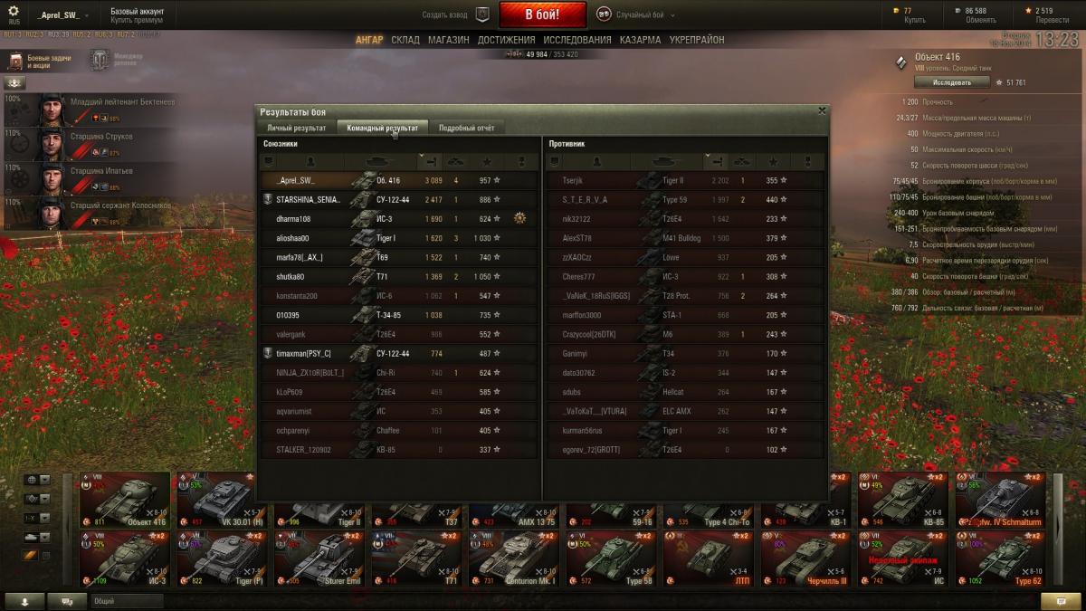 Ты дистанцию то видел с какой я стрелял? Не пробил 2жды Тигра2 и Шпрота, по разу ИСа 2 и 59ку. 4 в молоко. Так что показатели довольно таки нормальные. Учитывая хвалёную пробиваемость и альфу. Танк убыточен и это факт.