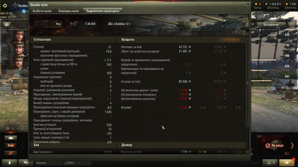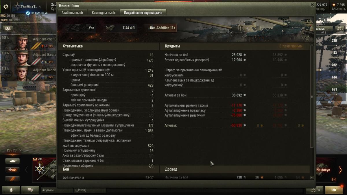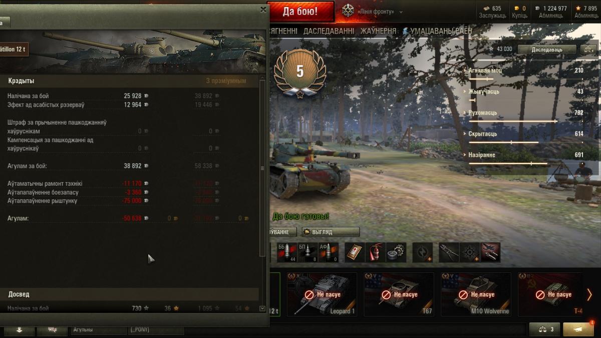 Думка мая (вердыхт): адносна добры СТ. Да, впервые когда я его прокачал и купил (это было больше полугода назад от опубликования этой записи), мне танк очень сильно не понравился. Во-первых, его стоковое орудие имеет очень плохое время сведения - 4 с! Это действительно очень плохо. Даже со 100 %-ым экипажем, время сведения и разброс этого орудия ужасны. Также, впрочем, как и бронепрoбиваемость. Тоже касается и топового орудия. Оно почти такое же. Для того, чтобы на нём эффективно играть, или для того, чтобы хотя бы поправить на нём статистику, нужно играть с 75%-ым экипажем, как минимум, маск. сеткой и стереотрубой (у нас ведь даже нормального обзора нет - о, ужассс), также, если у вас позволяют финансы (у меня, к сожалению, нет ), нужно купить на него вентиляцию 2-го класса и приводы наводки. Тогда он реально будет хорошим танком за счёт своего неплохого ДПМ. Но даже если денег нет, то смело можно ставить только маск. сетку и стерео трубу и достаточно неплохо играть. Да, максимум, что вы сможете выжать - это 330-370 д., но это для нашего танка, это уверенная зелёная норма. Про тактику могу сказать только одно. Нужно очень аккуратно играть с 5-6 лвл., как правило из-за спины, потому, что мы для них - лёгкая жертва. Мы через раз-два можем пробивать на ББ в лоб КВ-1 и КВ-1С. С шестого лвл. пробиваем только лёгкобронированые танки. Это уже что-то. С 4 лвл. можно и понаглеть, но опасными для нас являются - Т-28, B2, Matilda. Всегда полностью досводитесь - разброс у нас 0.42 м. на 100 м.. Для получения мастера достаточно настрелять 900+ дамага и сделать 4+ фрага. Если фрагов больше, дамага может понадобиться меньше. Тоже действует и наоборот. Приблизительный чистый опыт для Мастера - 800 ед..