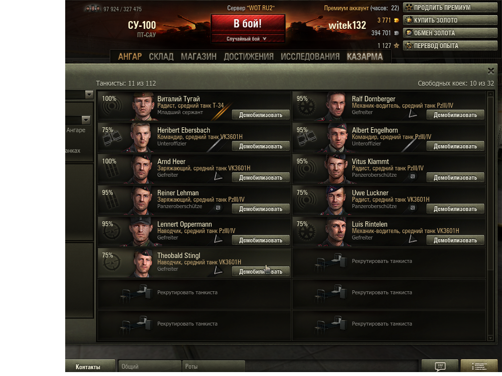 здравствуйте помогите немогу высадить экипаж из казармы в танк нет окошка рекрутировать только есть окошко демобилизовать