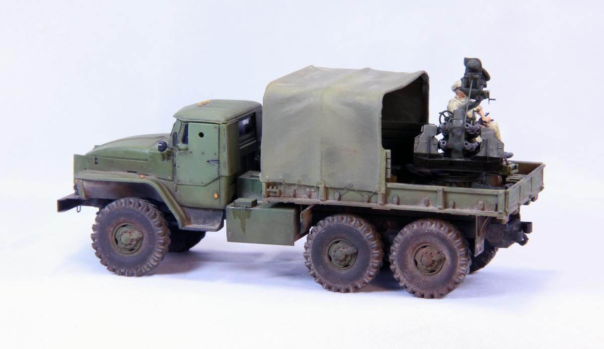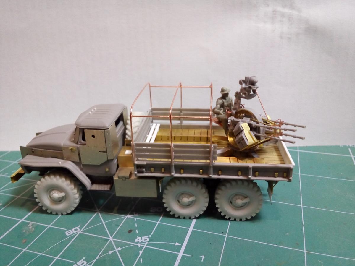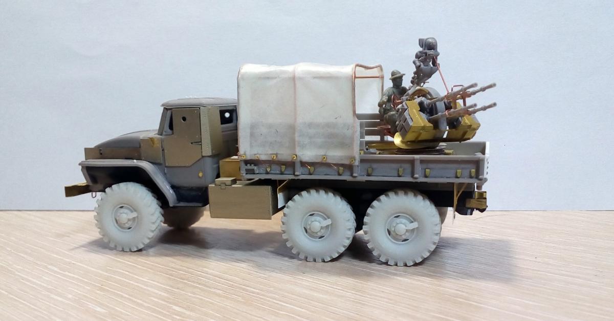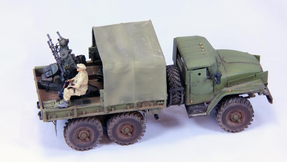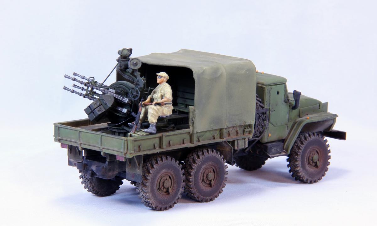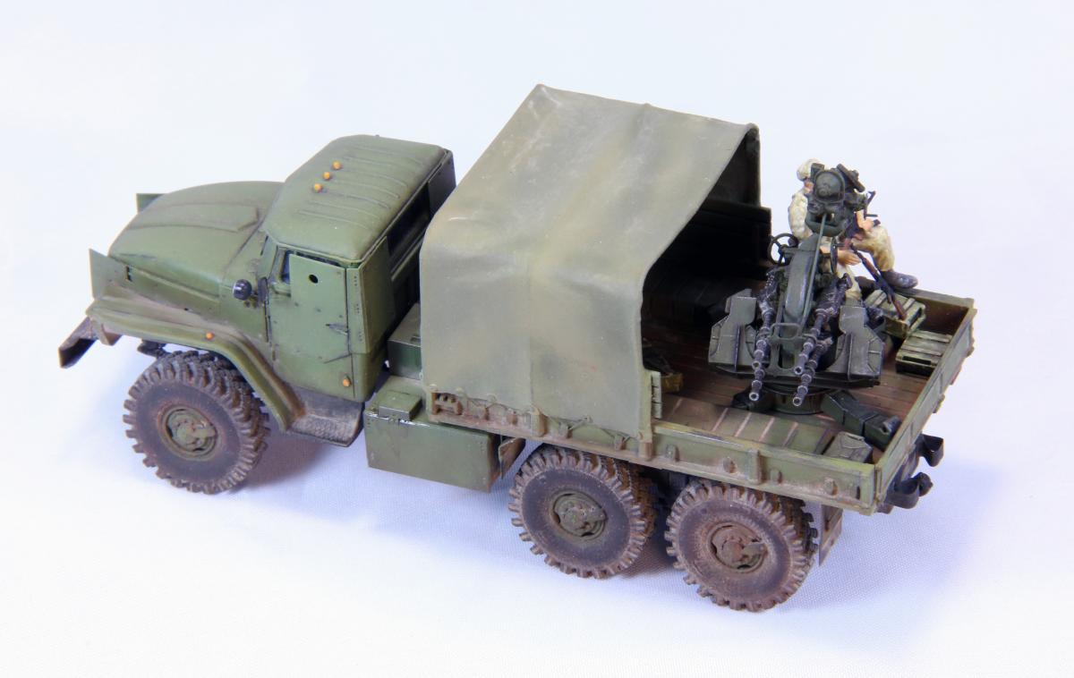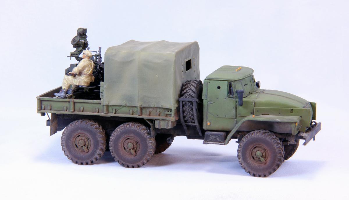 Не многословно. Решил себя попробовать в машинках. Ну и ЗПУ давно лежала в закромах. Мои размышления на тему Афганистана и как могло быть. Ни какой привязки к прототипу нет. Знаю, скажите: "Не было у нас в Афгане ЗПУ-4"!!!!! Да, не было, но у духов они были.......Считайте трофей!Просто был Урал 4320, травло на Афган и ЗПУ от Григорова. Решил все объеденить и попробовать свои силы в колесной технике. Что получилось - судить вам, коллеги!
