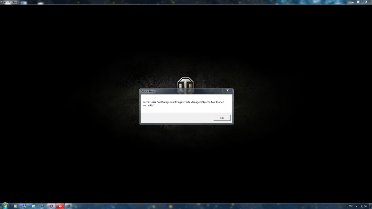 Возникла следующая проблема - из-за неспособности Game Center обновиться, вчера вечером минут 10 предлагал подождать и попробывать позже, сегодня утром и в обед все повторилось - "подождите, повторите". Снес этот Game Center, видимо в отместку он удалил и WOT и WoWP (даже чище чем стандартный удалятор, со всеми папками). Ну ладно поставил WOT заново, а он не запускается с приложенной картинкой. Лончером целостность проверил, он написал все хорошо, тогда в чем причина? Моды не ставил.