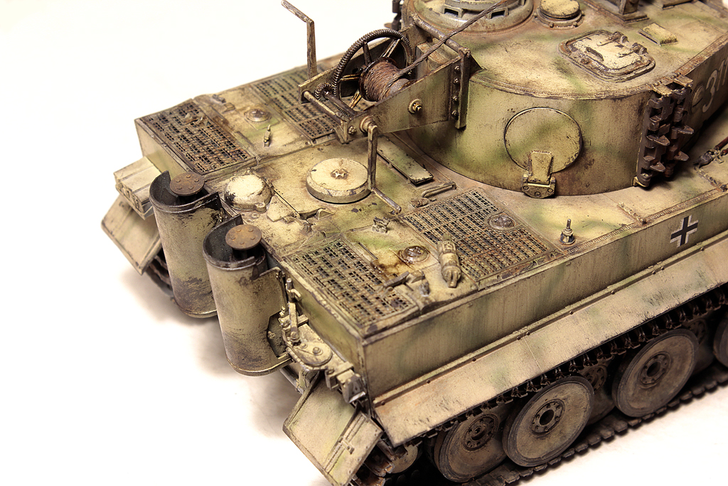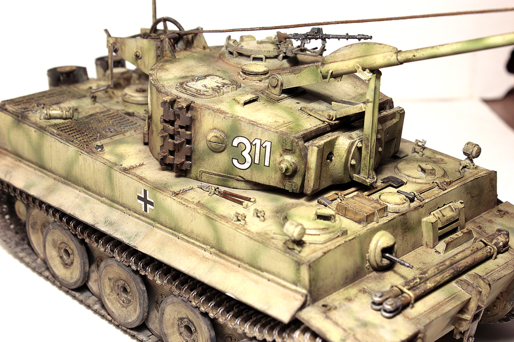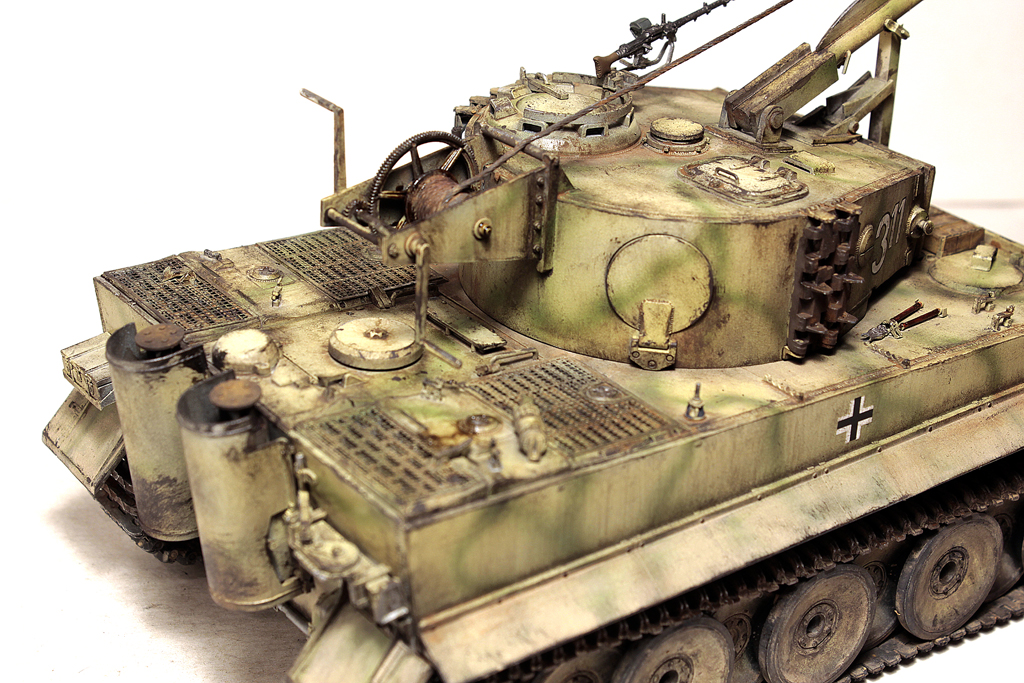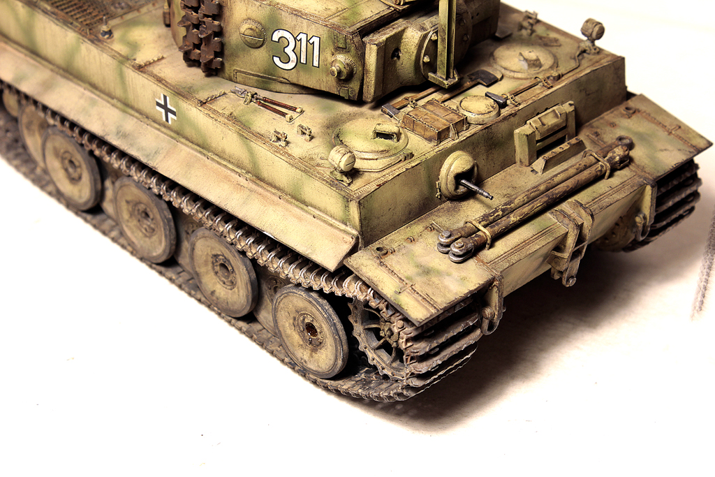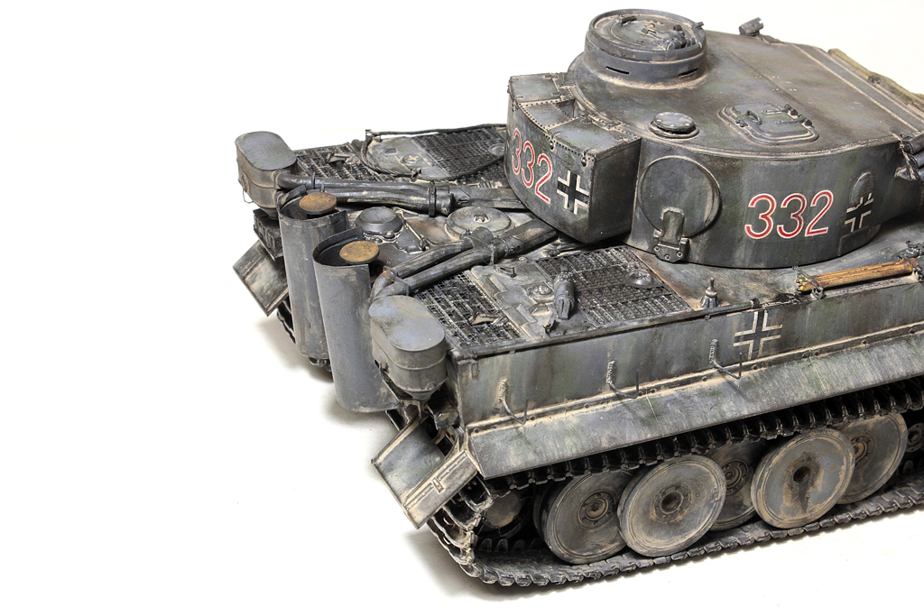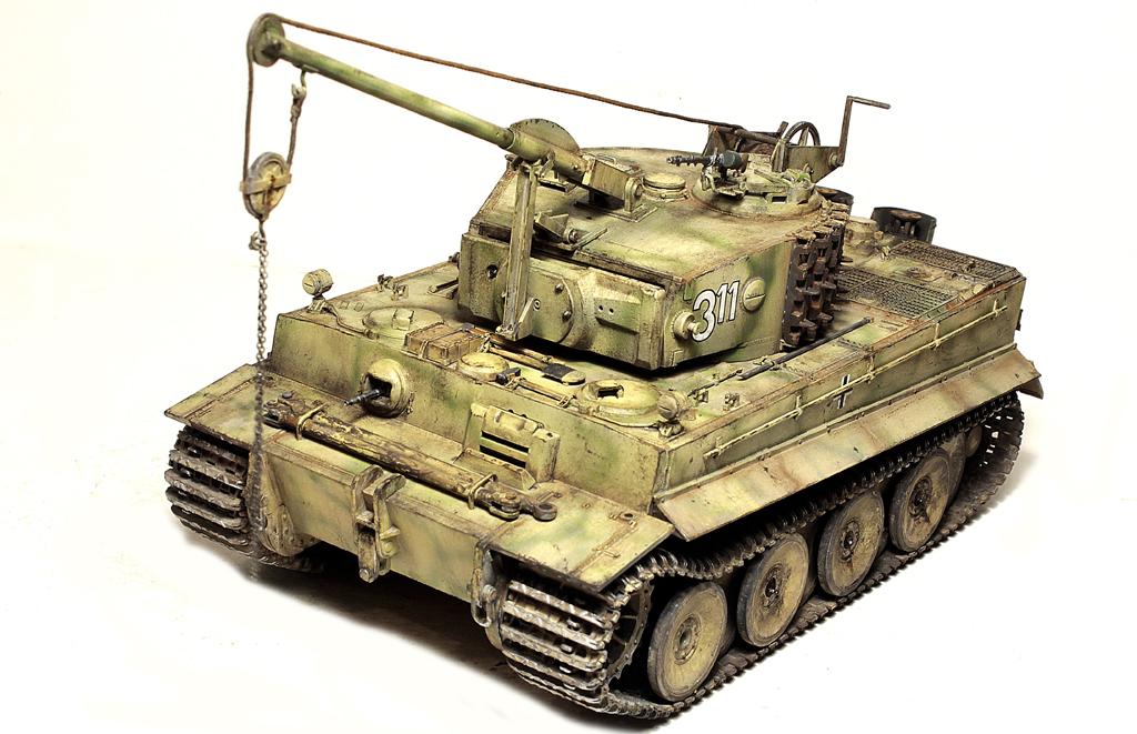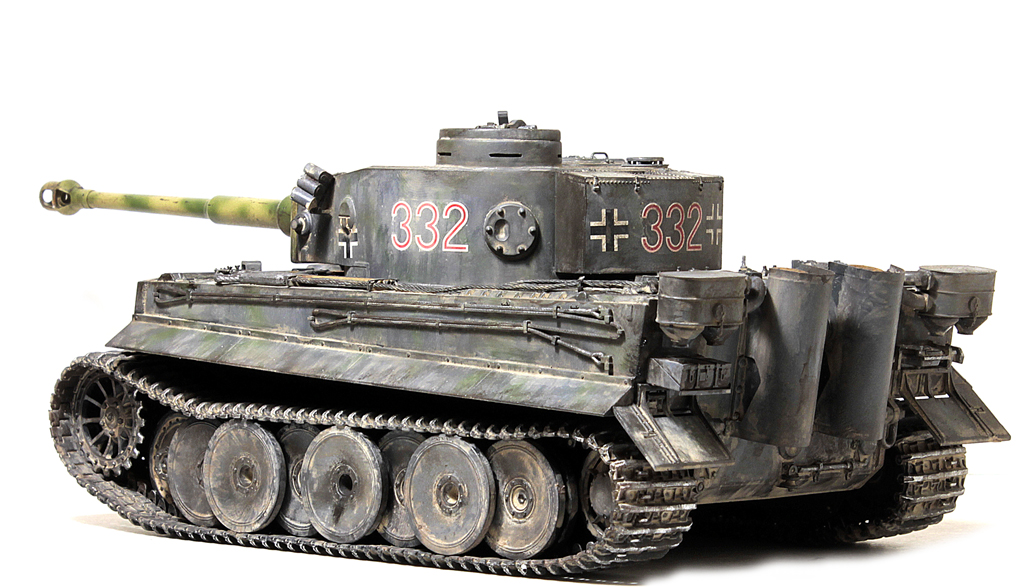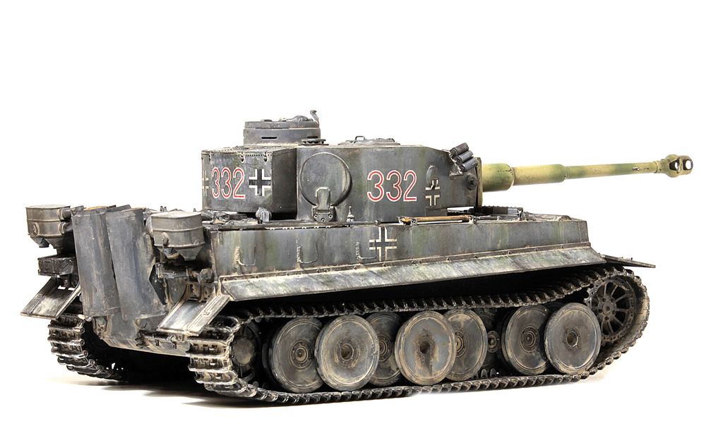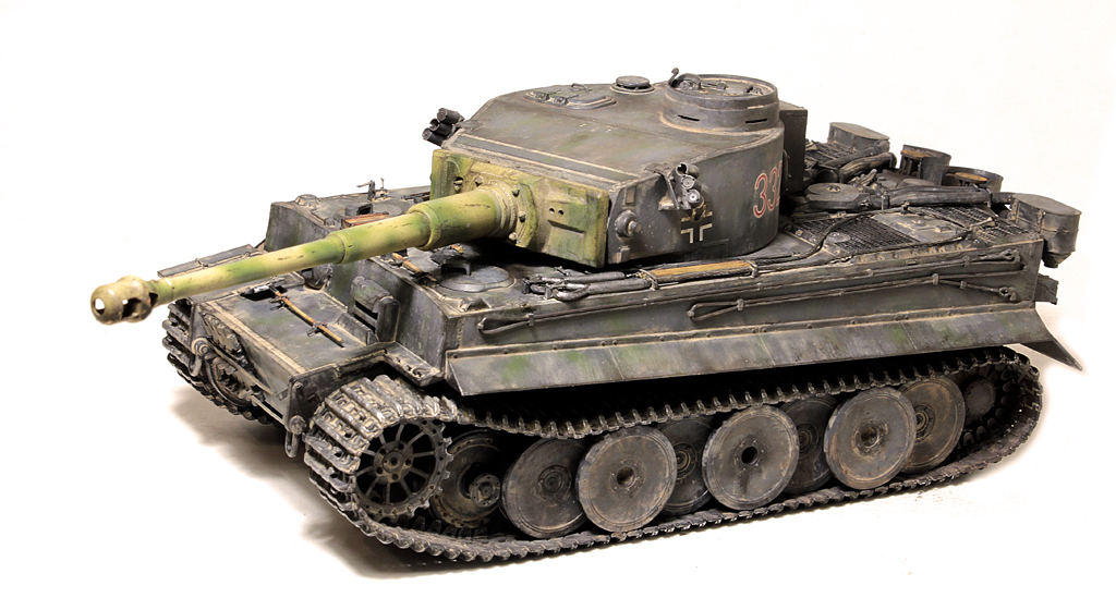 Доброго времени суток, друзья!В силу ряда необъективных причин, в новогодние праздники выдалось свободное время для окончания работы над моим самым затянувшимся долгостроем - Тигр 1 от Звезды. Купил я его 4 года назад, когда эта модель только появилась... на сколько я помню, в первой партии не оказалось даже наборных траков (по крайней мере в моём наборе лежали "резинки". Про утяжины на данной модели даже вспоминать не хочется... они были на каждой детали, "ванна" закручена винтом... короче коробка с танком перекочевала в самый дальний ящик.Насмотревшись на работы коллег, решился всё таки довести сборку до конца. И предлагаю свою, довольно условную интерпретацию "серого Тигра с жёлтой маской".Использовались из допов:- остатки набора травления Вояджер,- ствол - Абер,- маска орудия RFM (собирал их Берг Тигр с краном, там оказалась нужная)- шанцевый инструмент- Драгон, РФМ.- Траки - резинки DS от Драгона.- металлические стволы пулемётов - Мэджик Моделс.- тросs - Эурика и RFM- добавлена проводка к гранатомётам.- доработаны сварные швы и добавлены П- образные крепления под бревно.Не получилась "драная" юбка по бортам, поставил цельнуюНомер 332 красный - как на бокс-арте у Тамии.В процессе покраски "умерла" декаль с крестом на левой части корпуса (оставил без него).В итоге получилась относительно вольная интерпретация знаменитого "серого" Тигра.К сборке данный набор категорически не рекомендую - утяжины и куча необходимых допов с соответствующей стоимостью убивают всякое желание за него браться.