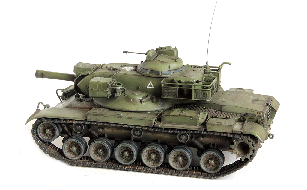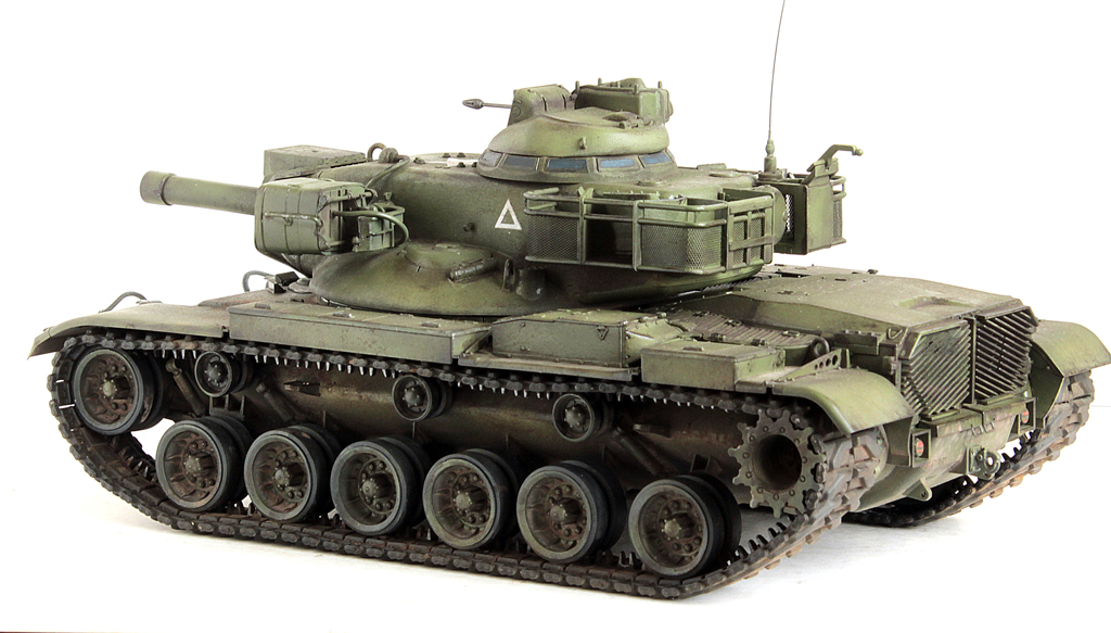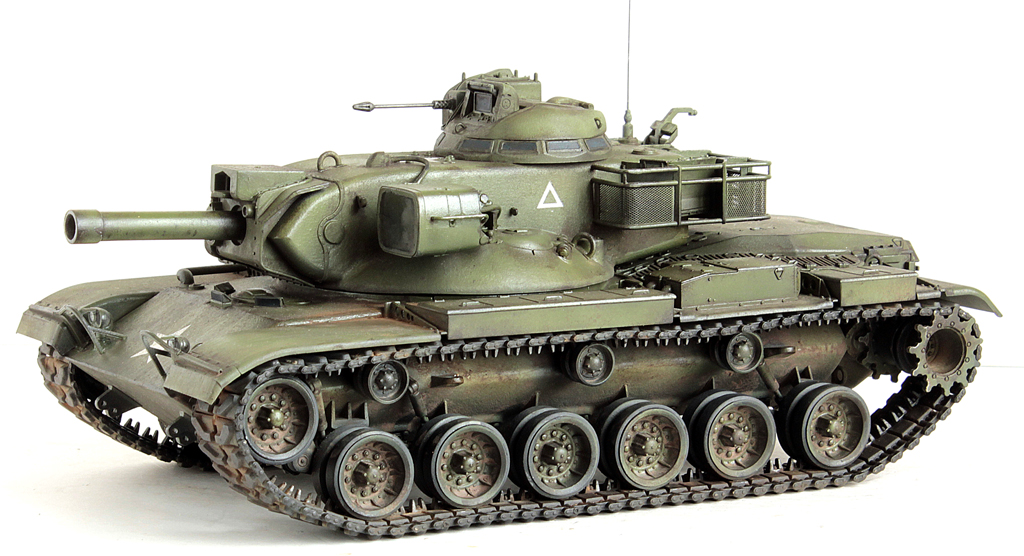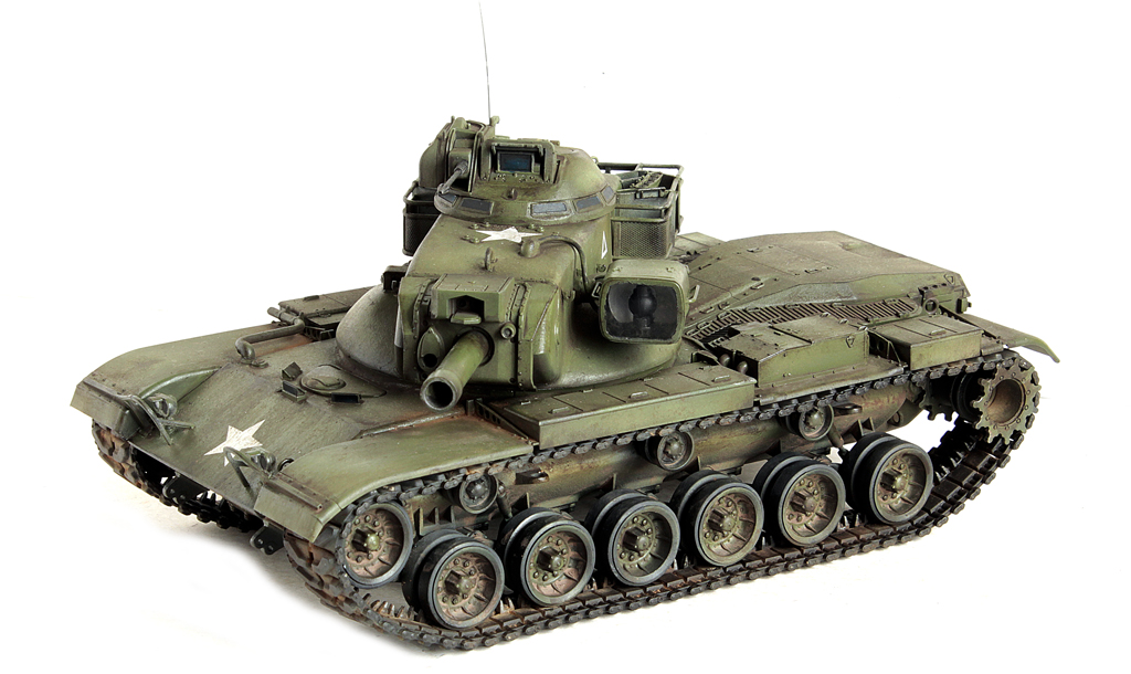 Доброго времени суток, друзья!На повестке дня очередной представитель "позднего" Драгона (а это значит запредельная стоимость набора и отсутствие разного рода "плюшек" от слова совсем).Сам набор в сборке не сложный. Тем, кто собирал Драгоновскую линейку М48/М60 - дней пять - десять по вечерам посидеть.Сборка велась полностью из коробки. Наборные траки даже искать не стал ввиду их отсутствия в свободной продаже, оставил штатные "резинки".Из дополнений только антенна, кабель к прожектору от Тамиевского Type74.