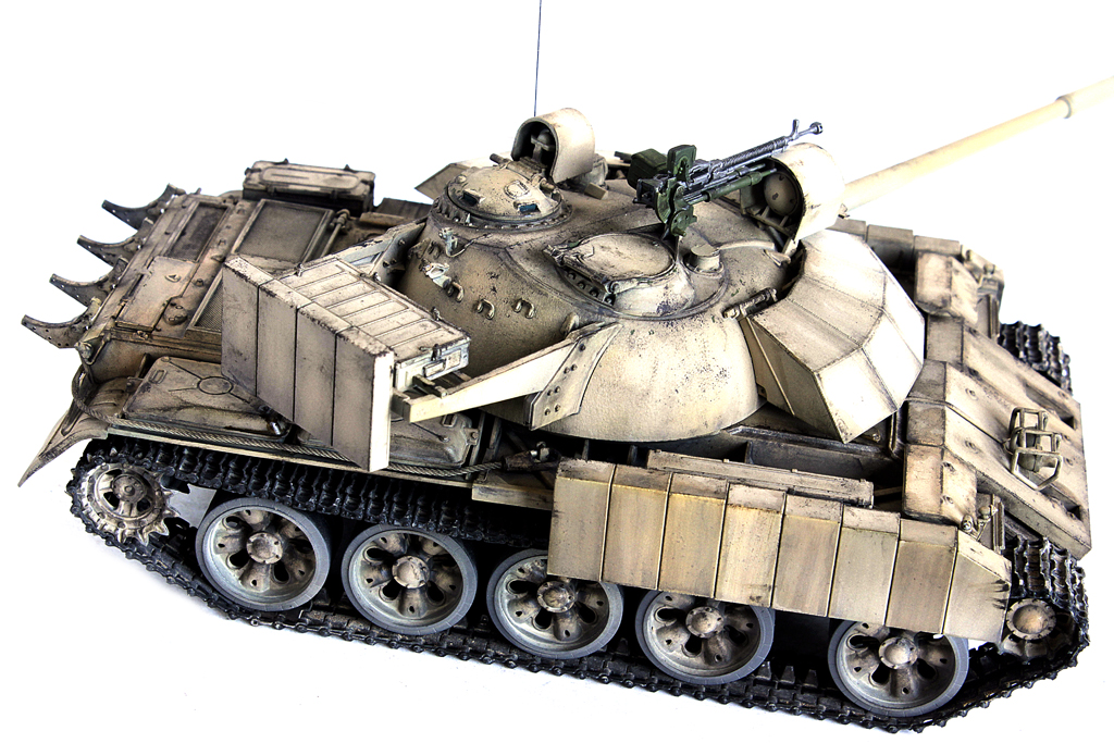 Доброго времени суток, друзья!Сегодня на повестке дня одна из необычных инкарнаций Т-55 Энигма от Тамии! Сам набор вполне не плохой. Этакая "стандартная" Тамия. Собирается всё просто, шпатлёвка не пригодилась. Из дополнений были использованы:- точёный ствол от Мэджик-Моделс;- антенный ввод так же Мэджик моделс;- Трос - Эурика;- наборные траки Мастер клаб;- топливопроводы - медная проволока.- надмоторные решётки - ЕТ Модел.Окрас пустынный, песочный, поскольку разнообразием окраски и необычными камуфляжами эти танки не отличались.Танк смотрится очень оригинально и необычно! Кто захочет иметь такой пепелац в коллекцию - очень рекомендую!С Уважением!