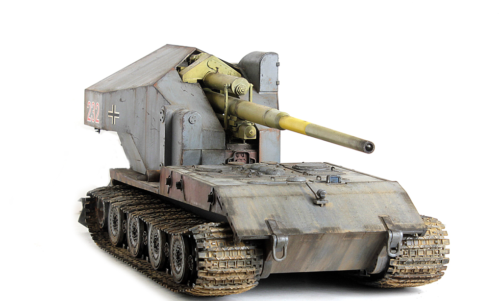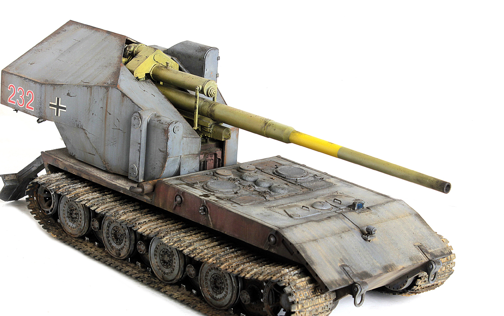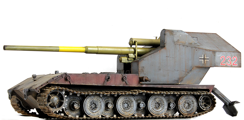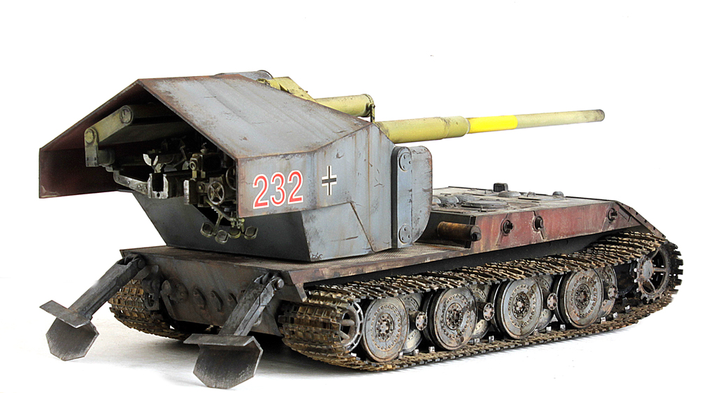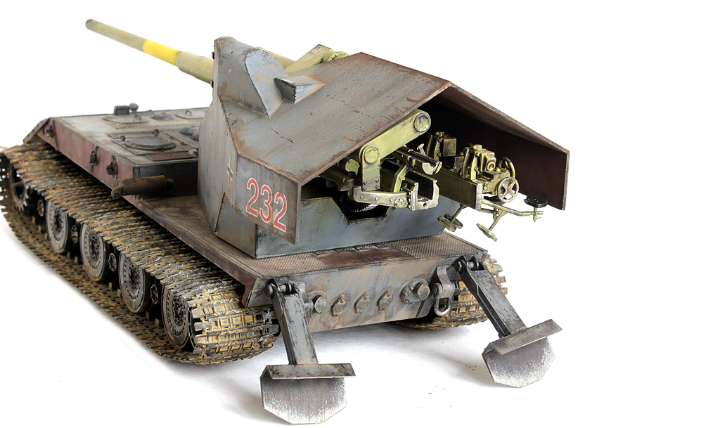 Доброго времени суток, друзья!Пока было время в отпуске, доделал наконец новинку этого года от Амусинга - знаменитую в одной малоизвестной игре в случайные бои машину - Waffenttrager Auf E-100!Набор довольно не сложный в сборке, представляет собой ходовую часть от Е-100 (пружинки, подвижная ходовая и наборные траки). и собственно зенитное орудие с несколькими вариантами стволов. Ранее доводилось собирать схожую зенитку от Такома, так вот у Амусинга она собирается на порядок проще - всё "крупноузловое", стыкуемость - идеальная. Единственное, что потребовало шпатлёвки - рубка (при соединении "верха" с "низом" образуется внушительная щель.Сборка полностью из коробки. С инженерной точки зрения ИМХО концепция весьма сомнительная и с точки зрения перезарядки и с точки зрения расположения экипажа (я пока собирал, всё думал, как наводчик взлетал на почти 3 метровую высоту на малюсенькое сидение и что с ним происходило при выстреле под этой металлической "шляпой"???.Покраска - под немецкую "классику".