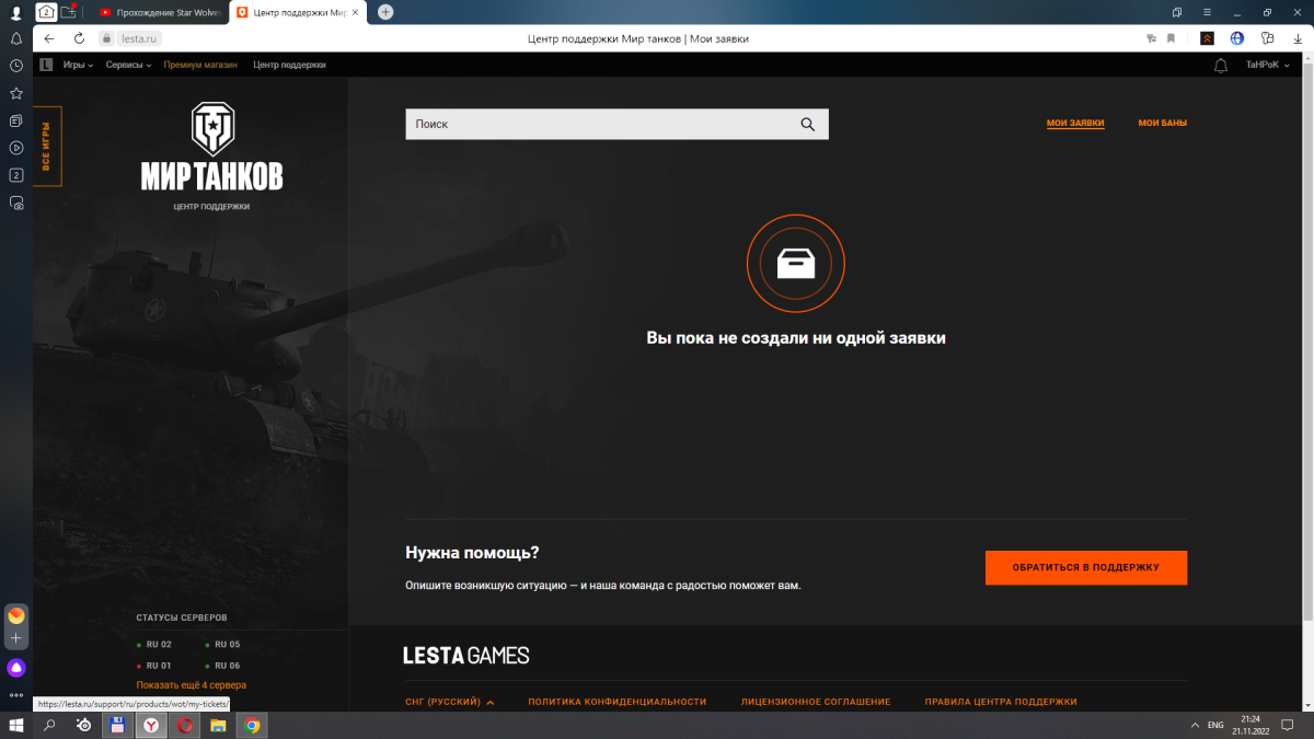 Добрый вечер, не могу создать заявку в центре поддержки. Точнее после того как я её создаю и нажимаю отправить - меня просто выкидывает в мои заявки где написано "Вы пока не создали ни одной заявки". Может у тех.поддержки есть имейл или номер телефона???