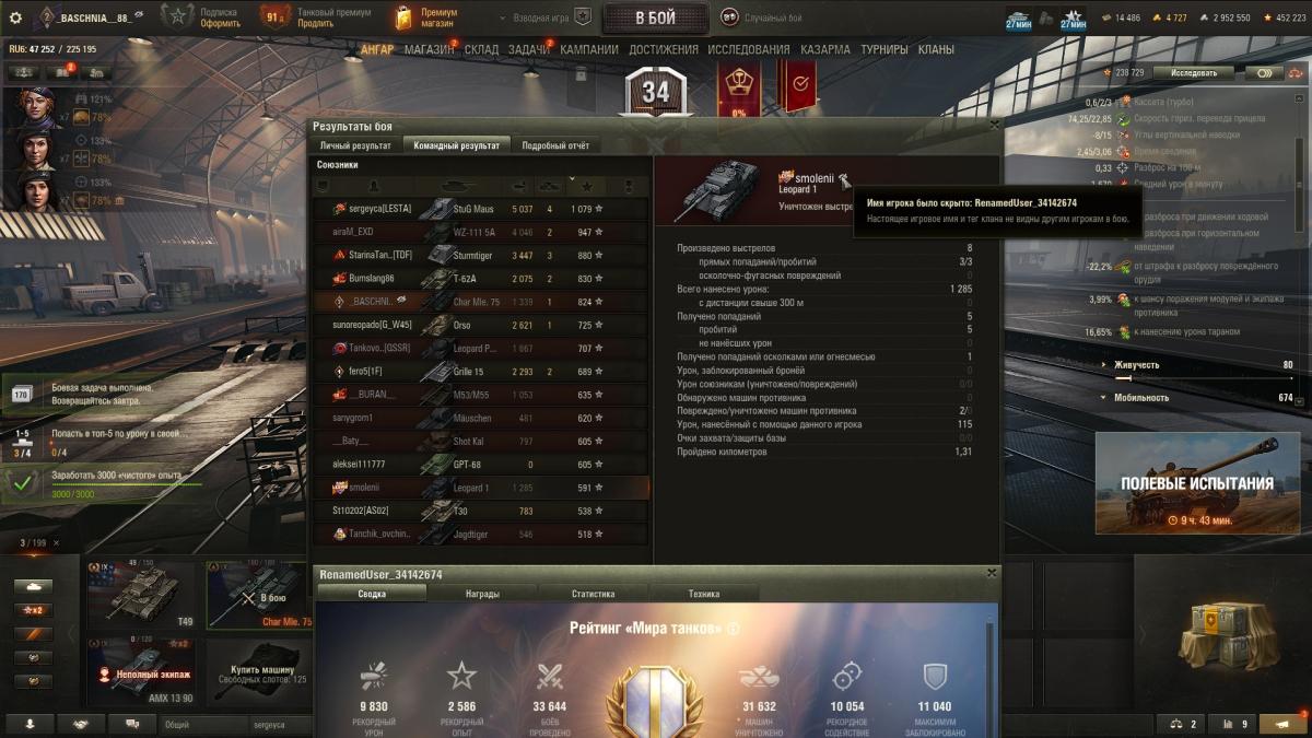 Танк прекрасен - теперь кустодроты на т95-е3 и прочих тортах, получают по-заслугам. Раньше реально было тяжело их выкурить, если заняли какой-нить камень на базе. Пол команды в конце могло угробится. А теперь 30с и фраг. Что касается имбовости - ее тут нету. Снаряды как снежки летают. Против амёб нормально играть. Если балансировщик подбирает скиловичков и читеров (стопудова модик какой-то появился, с отметками места пуска НУРСа), танк не играется вообще - даже мауса употеешь пробивать с дальней горы. Мало того, по-тебе еще и стреляют в ответ и попадают (вероятно временно - до первой волны банов). Причем находятся индивидуумы, которые видят ракету далеко за пределами круга обзора. Бред. P.S. После него, играть в обычные танки не интересно - влез на Вилку, на которой НУ ОЧЕНЬ много накатал боев. Там из 4ех выстрелов, хорошо если один пробьет или попадет два... А тут свёлся, прицелился - не попал, значит САМ виноват. Ну непробития стрёмные бывают уже - сразу такого не наблюдал. Леста явно начинает закручивать гайки. Плюс альфа - в упор мне такой же дал на 590, а я ему на 380+ - чушь имхо.