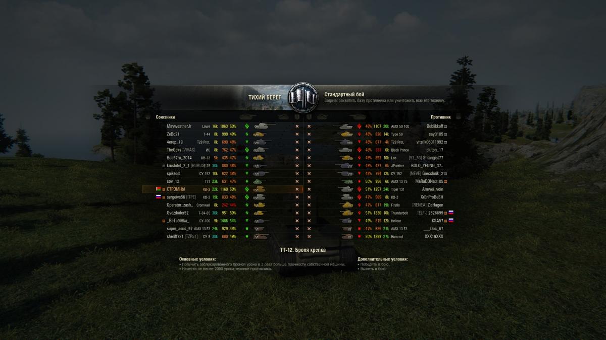 Добрый день! Играю давно, пользуюсь таким сервисом как XVM для понимания ситуации в бою и ведения нужной тактики со своей стороны. В последнее время участились случаи появления в командах (как союзников так и противников) танков с "очень интересной игровой статистикой". Например: танк аккаунт имеет более 30 тысяч боев, при этом личный рейтинг не то, что ниже среднего а я бы сказал стремится к нулю. На вопросы и обращения к нему в чате боя и после такие "люди" как правило не реагируют. Отсюда делаю вывод - данный аккаунт подкелючен к автоматизированной программе (попростому "бот". Неужели не очевидно для разработчиков (для игроков думаю все и так понятно), что ботов стало огромное количество и пора бороться с этим. Одно из решений - автоматический бан аккаунтов с неадекватной статистикой. Например - онлайн более 18 часов в сутки (с учетом именно боев, не простоя), неадекватная статистика (подчеркну - личный рейтинг просто почти ноль), так как многие сейчас могут сказать, что игра не для статистики, но если даже не для статистики, то хотя бы для удовольствия за 30+ тысяч боев получать удовольствие проще попадая в цель, а не катаясь по карте. P.S. Накипело, правда. За 4 дня праздников просто ошалел от составов команд, что союзников, что противников.