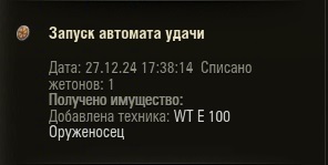 В общем открыл коробочки: хотел получить е77, в итоге что бы его получить ушло коробок на 20 т.р + около 40-50 тысяч голды. Выпал он самым последним, как и все остальные по гаранту. При чем изначально были в ангаре бурза и сомик. Ожидал от танчика (е77) большего, блогеры разрекламировали как имбу, по факту фаза не хуже, а может даже и лучше. Осадочек в итоге остался, за 20 тысяч рублей и 40 000 годы, по факту получил посредственные танки, за такие не малые деньги игрок должен получить удовольствие, а не дизмораль. На новый год потратил + - столько же, но получил много хороших танков, около 100к голды, кучу серебра и свободки. Доверие к Лесте упало, больше в подобных "акциях" желания участвовать нет; извиняюсь за нытье, подгорело.