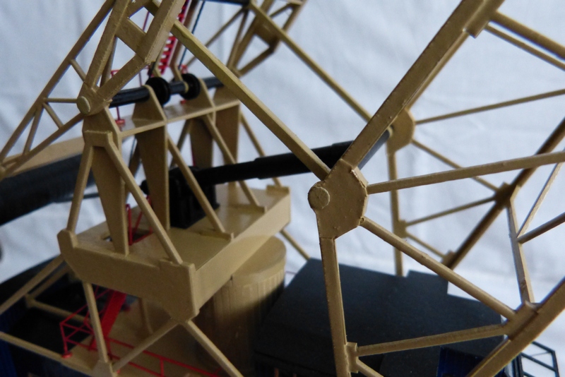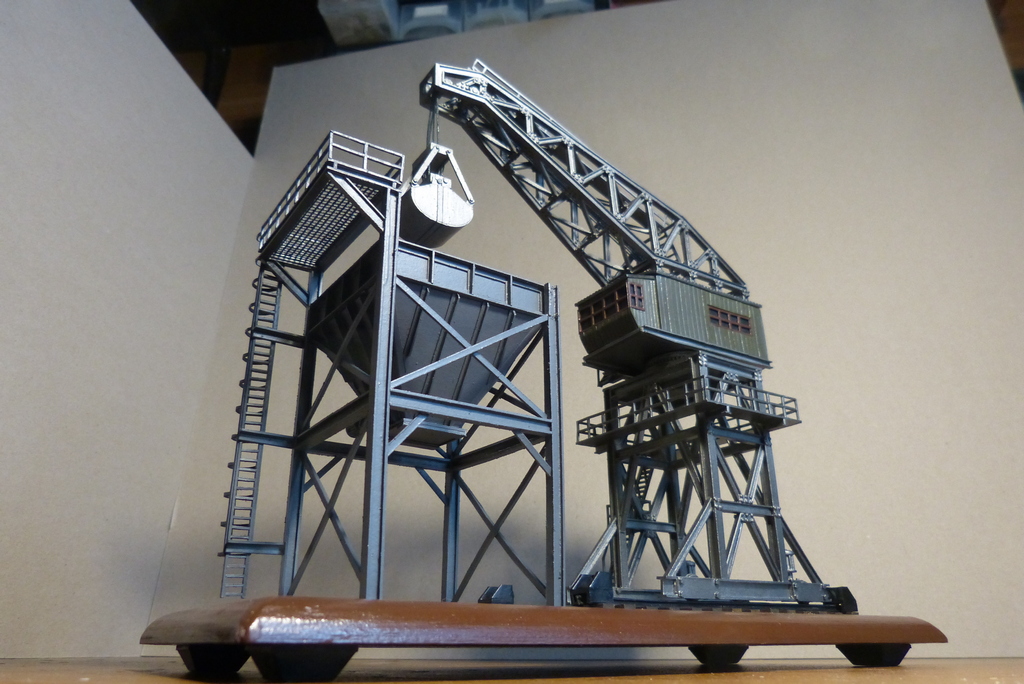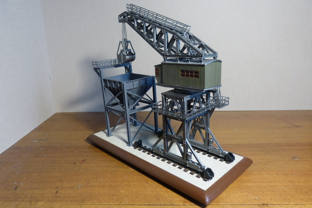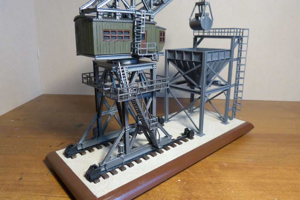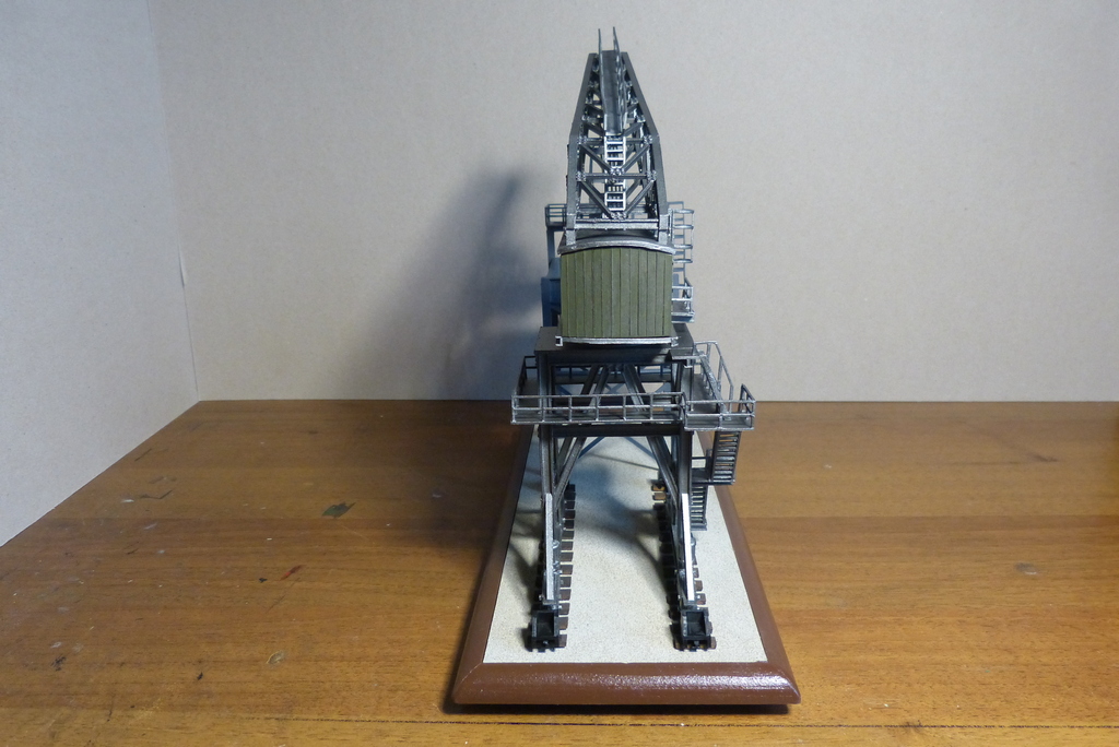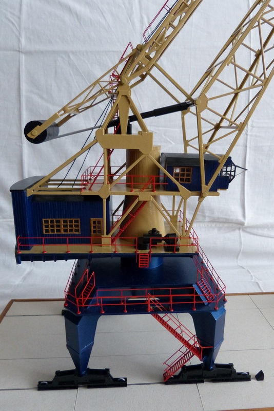 Модель из бумаги,приобреталась как набор лазерной резки,но когда получил на почте и развернул дома набор был весь переломан.Очень хотел построить сей кран и взял линейку,карандаш и вычертил из ватмана кран заново,высота 50см масштаб 1/87