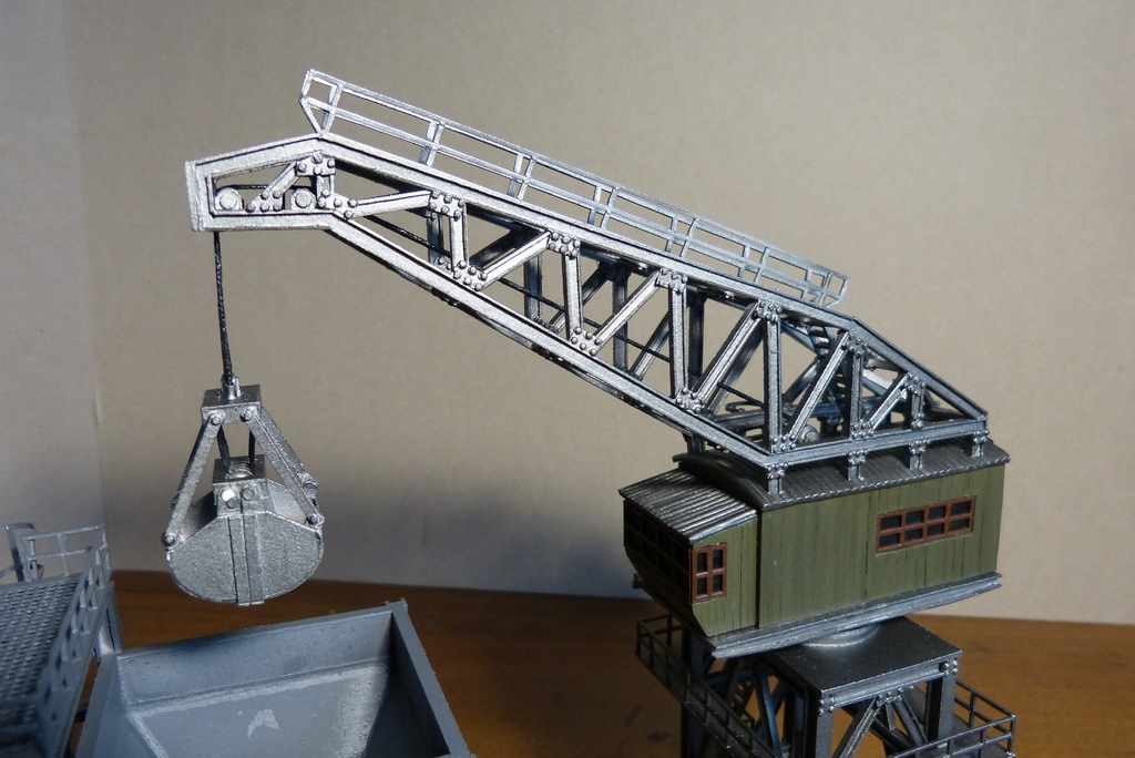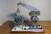 Всем привет !!! Такая вот получилась поделка из бумаги.Масштаб 1/100.Строился кран по фоткам пластиковой модели фирмы Faller и картинки бокового вида.Задачу ставил попробовать построить сам кран,ну а после пустоту под стрелой заполнил перегрузочным бункером.Никакой привязки к какому то объекту нет.Время постройки 19 дней,материал чертежный ватман ушло 24 листа А4