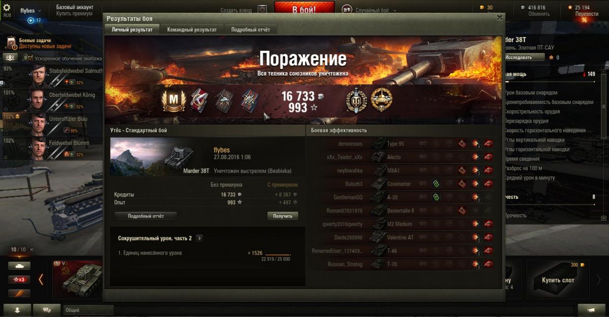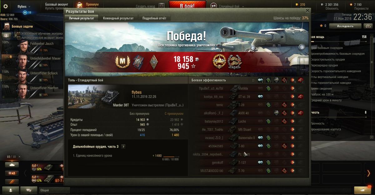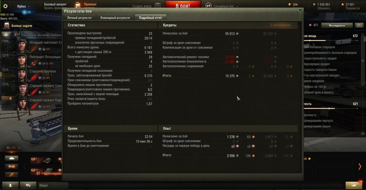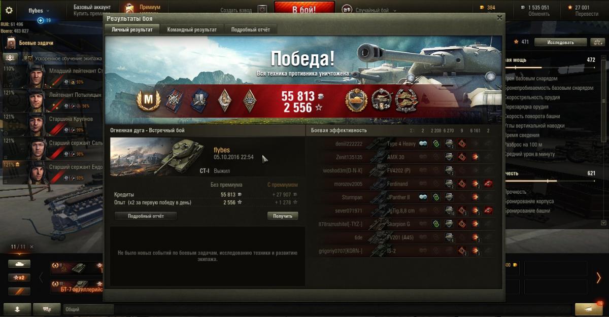 Как бы тебе объяснить .... этот бой играл по схеме цветного статиста - не лез, ждал пока будет видна расстановка сил на карте, немного настрела по чужому свету ... и когда фраги потеряли свое хп поехал ... Мне так не интересно))), стата меня не интересует только потому что это просто игра и ничего кроме коротания времени по-вечерам и потери зрения))) не дает. Да и в случайных боях команда редкость))), а команда это сплоченный коллектив, имеющий лидера. Да, интересно пострелять, исследовать новую технику, но не более. Я не голдострел, только ББ и ОФ, прем. аккаунт не покупаю, прем. технику не выкупаю. Так что у кого стата 50+ на форуме не надо кичится своей статой (это для школьной перемены). Может грубовато но по другому не получается....... когда не соглашаются с мнением "папок")), не надо тыкать сразу красной статой. Удачи!