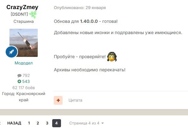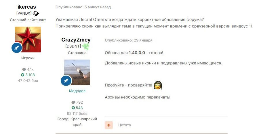 Всем Здравия! Я веду свой топик на этом форуме. Там мод иконок обсуждается и свежие версии выкладываю. Так вот, после обновления форума последний пост теперь показывается 29 января 2026, с новостью что вышла обнова на 1.40.0.0. А остальное, после этой даты, где??? Где данные по обнове на 1.41.0.0.?