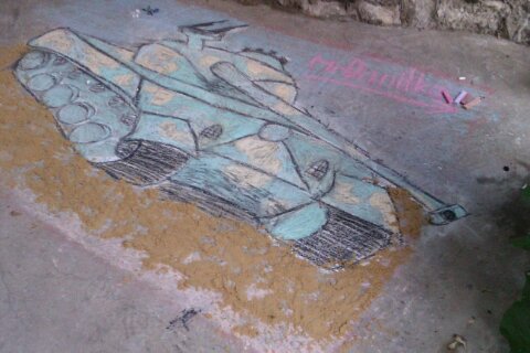 Как только увидел конкурс я сразу не обратил на него внимание но вскоре решил нарисовать танк и отправить... Вначале хотел нарисовать Т110Е5 но потом наткнулся на картинку Bat.Chat.25t и решил нарисовать его... Купил цветные мелки когда шёл домой мне покозалось что их не хватит и купил белые мелки и чёрный pastel Рисовать начал вечером (за вечер нарисовал контур и фон), наутро продолжил и разукрасил свой танчик... Внизу насыпал песок для большей схожести с картинкой Мой ник: MrDanilka!