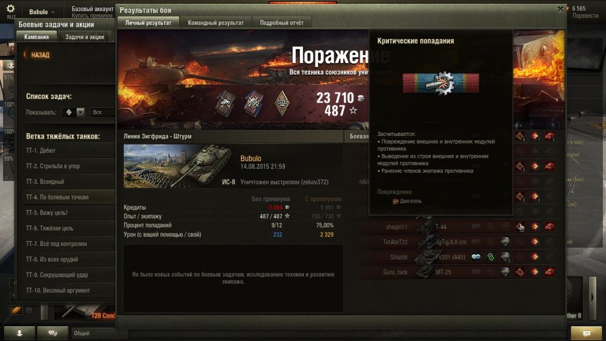 Здравствуйте, Вроде читал все внимательно, надо повредить или вывести из строя 5 модулей/членов экипажа. На скринах видно, что повреждено/выведено 6, но.... что-то пошло не так. Объясните в чем дело плиз, помогите познать дзен этого лбз. http://cdn-frm-eu.wargaming.net/wot/ru/uploads/monthly_08_2015/post-33526891-0-01814500-1439585772_thumb.jpghttp://cdn-frm-eu.wargaming.net/wot/ru/uploads/monthly_08_2015/post-33526891-0-57110400-1439585773_thumb.jpghttp://cdn-frm-eu.wargaming.net/wot/ru/uploads/monthly_08_2015/post-33526891-0-24655400-1439585775_thumb.jpghttp://cdn-frm-eu.wargaming.net/wot/ru/uploads/monthly_08_2015/post-33526891-0-87900300-1439585776_thumb.jpghttp://cdn-frm-eu.wargaming.net/wot/ru/uploads/monthly_08_2015/post-33526891-0-41498400-1439585778_thumb.jpghttp://cdn-frm-eu.wargaming.net/wot/ru/uploads/monthly_08_2015/post-33526891-0-58035900-1439585779_thumb.jpg