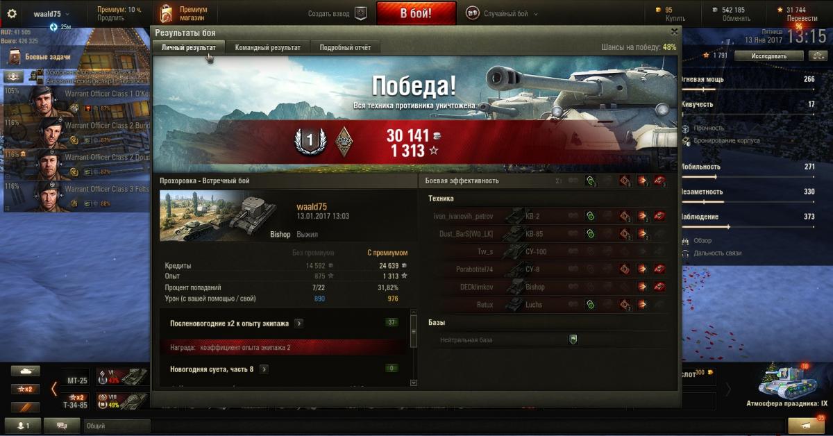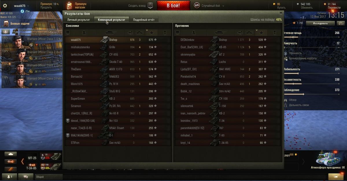 А маскировка уже прокачана? У меня командору - лампа, остальным маскировка, затем ББ. К вопросу об эффективности Биша в бою: Вот так сегодня получилось (обратите внимание на топ обеих команд по итогам боя ): http://cdn-frm-eu.wargaming.net/wot/ru/uploads/monthly_01_2017/post-33639787-0-91552100-1484303712_thumb.jpghttp://cdn-frm-eu.wargaming.net/wot/ru/uploads/monthly_01_2017/post-33639787-0-49223200-1484303711_thumb.jpg И до кучи вчерашний бой http://cdn-frm-eu.wargaming.net/wot/ru/uploads/monthly_01_2017/post-33639787-0-17305800-1484303710_thumb.jpg