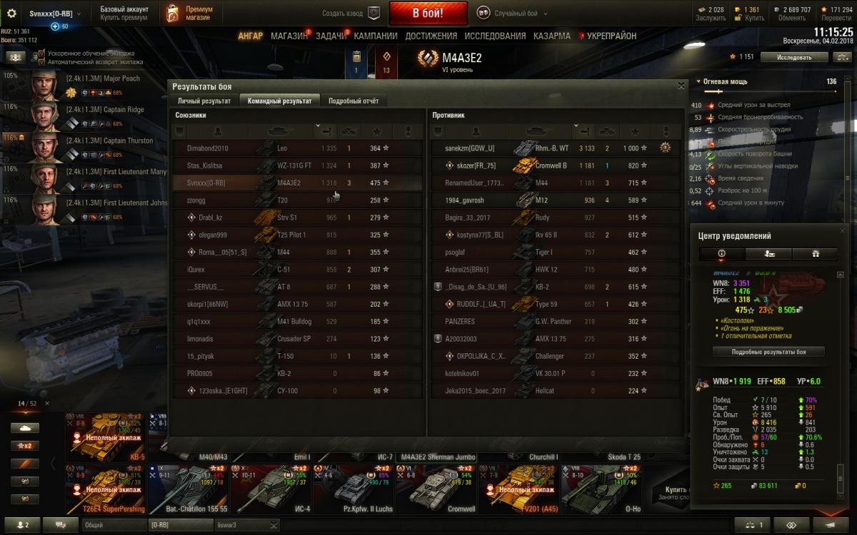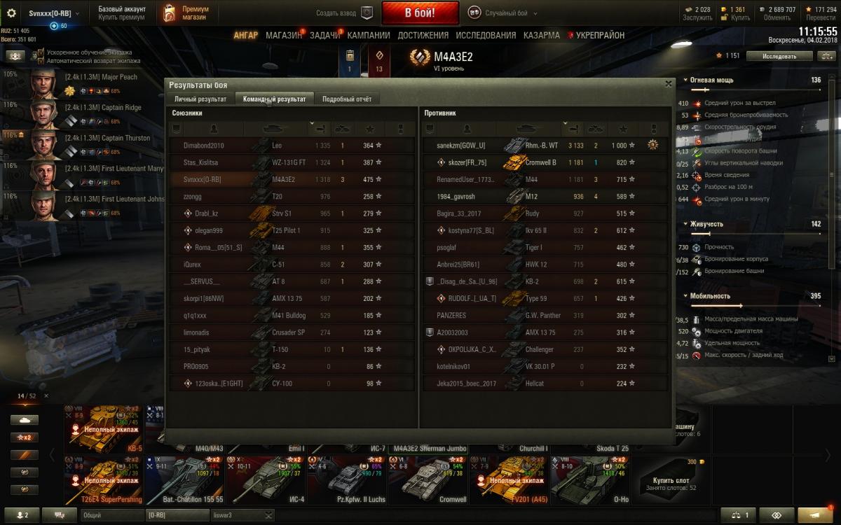 4. Если вы посмотрите выше то есть скрин с подробным отчётом за бой там я на втором месте! Но не ниже.