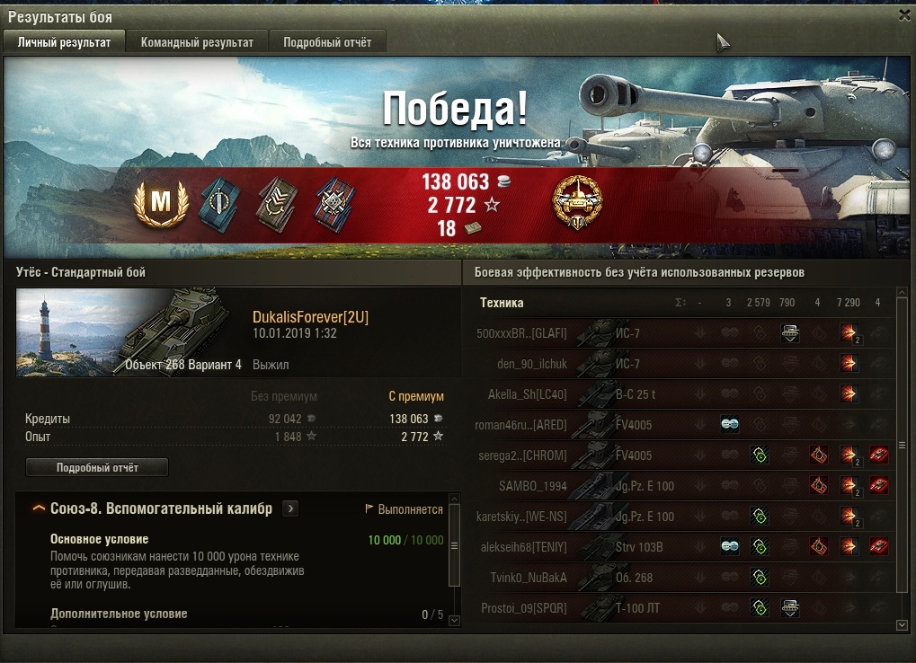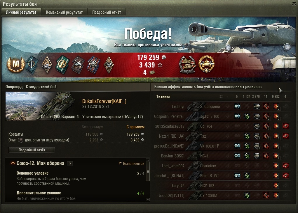 lfaza Ну во-первых, дед не ***. Почему? Да потому, что на нем можно творить дичь из-за того, что он живет. Он тупо живет в тех условиях, где не смогут другие танки. Во-вторых у меня в статистике дед онли на голде, а 268/4 взят 21 декабря (т.е. значительно позже нерфа) и катаю его я на бб. В твоей же стате на кттс (кстати у нас 1 в 1 вн8, лол) он датирован августом, если сайт не глючит, значит катал его до нерфа. До нерфа он был танком 12 уровня, после нерфа не стал ***, а как был лучшей пт в игре по геймплею, так и остался (с нерфом с 12 до 10 уровня). Не, я не спорю, что для многих понятие пт - стояние в кустах и настрел из точной пушки (а-ля 103 стрв), но я терпеть такой геймплей не могу. Главный нерф у 268/4 был в том, что он перестал стрелять сразу же после остановки (разброс от движения+ сведение были на запредельном уровне) и нерфа подвижности (раньше вообще ехал быстрее многих ст и занимал точку первым) а не из-за нерфа брони, которая как пробивалась в 2 точки - нижняя планка нлд + дальномер так и пробивается щас. В целом, мне он очень зашел и писать в этой теме, что он *** - как минимум глупо. У него самое уникальное сочетание подвижности, брони с защитой от идиотов, которые по кд стреляют в нлд (здрасьте 300мм нлд), альфовой пушкой с хорошим пробитием на бб и даже маскировкой. Аналогов у нее нет.