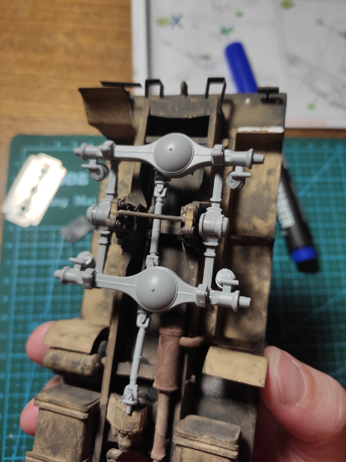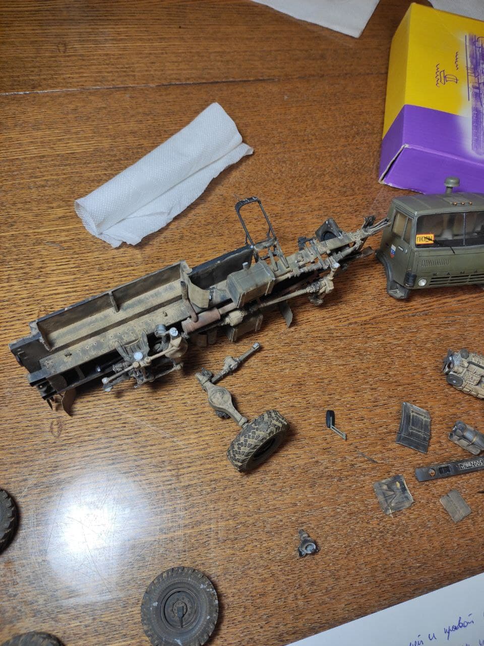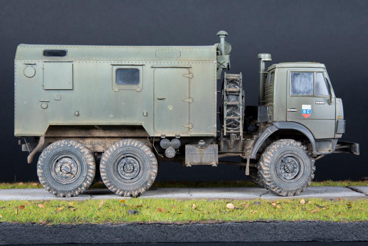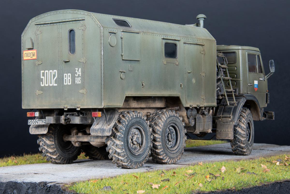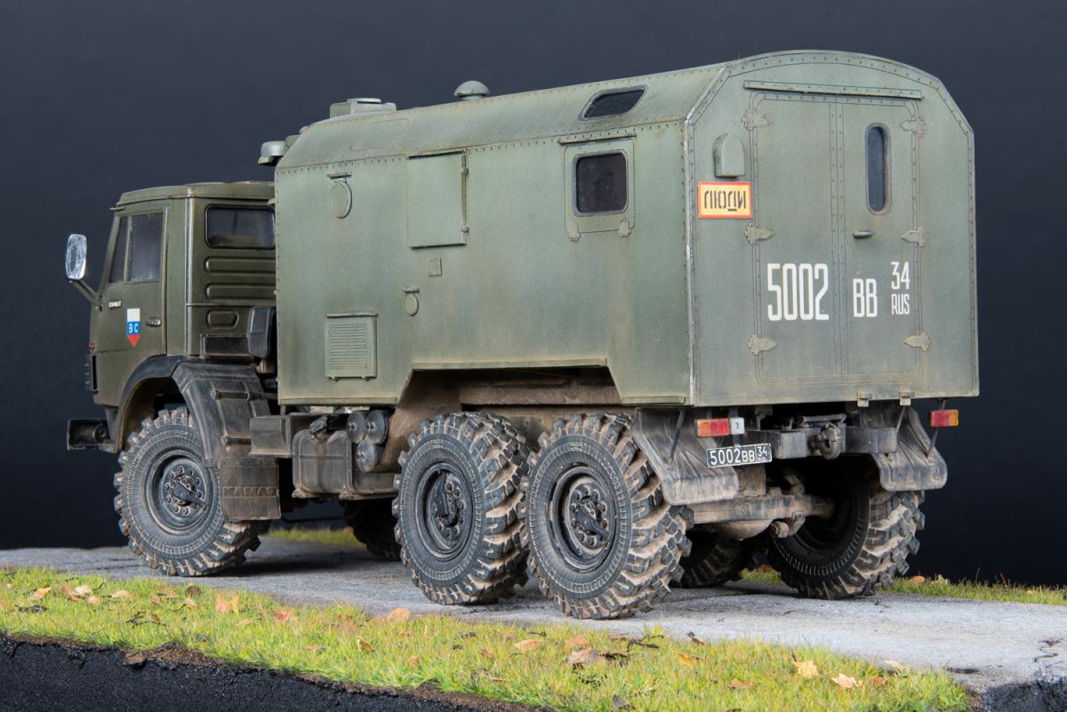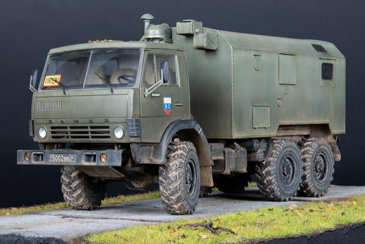 3. Данная модель имеет реальный прототип: это военный школьный автобус, на котором я в детстве ездил из воинской части в ближайший райцентр. С детства мечтал иметь точную копию “школьника” (такое прозвище было у этого КамАЗа, его даже офицеры на построениях так называли). Но потом желание забылось. И в 2018 году я впервые занялся моделизмом именно благодаря мечте сделать эту машину. Уж очень теплые воспоминания были, связанные с этим автобусом. В 2020 году начал стройку, которая продолжалась 14 месяцев.Также для фотосессии сделал бетонку из пенополистирола. Это та самая бетонка, которая вела в нашу воинскую часть.И чтобы максимально классно выглядела, я провел фотосессию прямо в месте базирования, в той самой воинской части. К сожалению, на сегодняшний день часть расформирована, но инфраструктура осталась.По краскам и химии: аэром красил и высветлял Tamiya и Mr. Hobby, краски под кисть Citadel и Valejo, жидкие и сухие пигменты от Ammo mig и ZIP Maket. Использовал фототравление Микродизайн, смоляные колеса MiniArm, кунг дорабатывал кусками фототравления и пластика с литников.