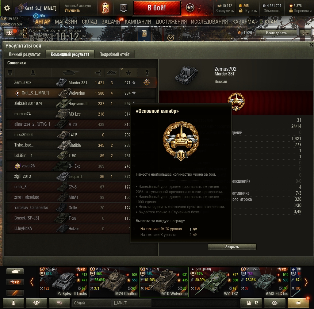 http://cdn-frm-eu.wargaming.net/4.5/style_images/wg/snapback.png_ShiNoTenshi_ (09 мар 2020 - 07:35) писал: Потому что вы не смогли прочитать и понять условия получения медальки. Поэтому настоятельно рекомендую тренироваться читать и понимать написанное, чтобы не возникало никаких вопросов. Я вам даже немного помогу в этом нелегком деле (главное подчеркнуто и выделено, вы главное прочитайте)Основной калибрПрисваивается игроку, нанёсшему наибольшее количество урона за бой. Нанесённый урон должен составлять не менее 20% от суммарной прочности техники противника и не менее 1000 единиц. Для получения достижения нельзя задевать союзников прямыми выстрелами. Может быть награждено несколько игроков как победившей, так и проигравшей команды. Достижение выдаётся только в случайных боях. Суммарное количество очков прочности команд может различаться. Из этого следует, что для получения достижения игрокам противоборствующих команд надо нанести разное количество урона. Вы не получили достижения по одной из причин:1) не нанесли урон, равный 20% от суммарной прочности техники противника;2) Вы задели союзника прямым выстрелом (рикошет, непробитие, по модулю). В таком случае достижение тоже не выдается. Если я нанес больше урона, как смог нанести "наибольшее количество урона за бой"?