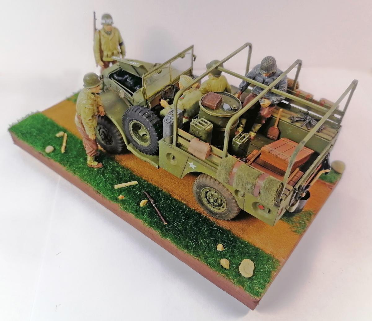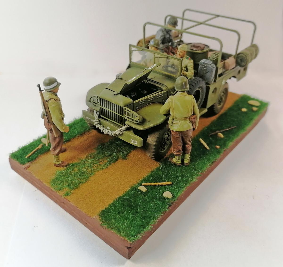Доброго времени суток! Набор Звезда + американские солдаты, кажется tamiya. На тему - Встреча на Эльбе. Трава, да, как газон, но другой не было тогда.