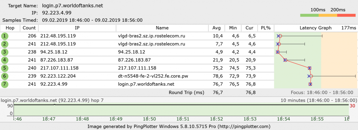 пинг на всех серверах вырос до 100, кроме 4, там около 60... до обновы играл на 1-2-5-6-7 с пингом 15-20 ... login.p1.worldoftanks.net(06.02.19).wgc