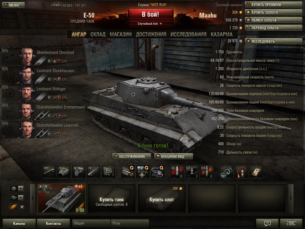 Вот скрин танка Е-50, надеюсь это поможет вам дать мне грамотный совет.Как видите экипаж ещё не 100% основной профессии, это из-за того что я переобучал экипаж с П-2 на Е-50, перки у них как и говорил хаотичные, и как мне кажется не совсем те что надо для игры, хочу по достижении 100% основной профессии скинуть всё это и поставить что-то более нужное( с запасом на будущее в виде Е-50М), решил для этого спросить на форуме у людей. И-ДА! танк ещё полусток! пушка от П-2(8,8)!