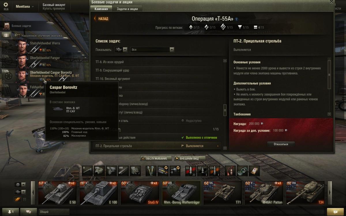 ЛБЗ пт-2 "Операция Т-55А". Задача http://cdn-frm-eu.wargaming.net/wot/ru/uploads/monthly_06_2015/post-3492679-0-08016000-1435174439_thumb.jpg. Условия в течении дня выполнялись не раз, не предавал сначала значения, думал что сам что-то упустил, пока не был проведен "контрольный" бой. Модули повреждены, из внутренних топливный бак у Т-30, экипаж у ягпантеры2 - заряжающий.http://cdn-frm-eu.wargaming.net/wot/ru/uploads/monthly_06_2015/post-3492679-0-52616100-1435175613_thumb.jpg. Урона нанесено более 2000 http://cdn-frm-eu.wargaming.net/wot/ru/uploads/monthly_06_2015/post-3492679-0-16986400-1435175641_thumb.jpg, Сам не пострадал вообще http://cdn-frm-eu.wargaming.net/wot/ru/uploads/monthly_06_2015/post-3492679-0-50296500-1435175663_thumb.jpg. И еще один бой тоже с выполнением условий, но без зачета. http://cdn-frm-eu.wargaming.net/wot/ru/uploads/monthly_06_2015/post-3492679-0-00597500-1435175729_thumb.jpghttp://cdn-frm-eu.wargaming.net/wot/ru/uploads/monthly_06_2015/post-3492679-0-83677800-1435175742_thumb.jpghttp://cdn-frm-eu.wargaming.net/wot/ru/uploads/monthly_06_2015/post-3492679-0-98399100-1435175748_thumb.jpg. За ранее спасибо.