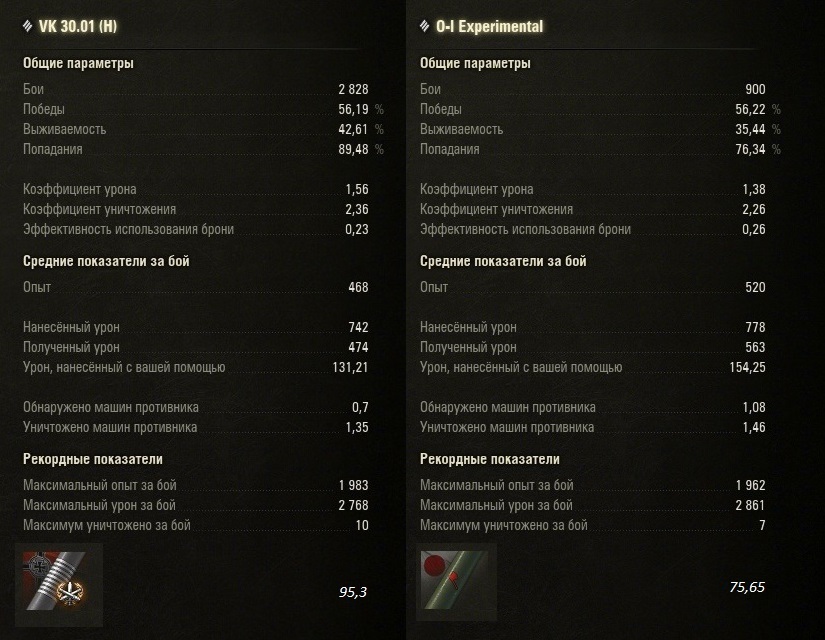 Зря, ох и зря я не послушал более опытных товарищей и изначально поставил на сабж не очень нужное ему оборудование и неправильно качал экипаж! После пары тренировочных боев в которых сабж пересветил на открытой местности VK3001H я исправился и перенастроил танк на обзор. Результатом доволен-только что ехал по улице к вражеской базе, заметил стоящую в кустах СУ-85, остановился, полностью свёлся, выстрелил и только тогда противник меня обнаружил! И этот случай не единичный. http://cdn-frm-eu.wargaming.net/wot/ru/uploads/monthly_10_2015/post-35486258-0-62857700-1445180009_thumb.jpg