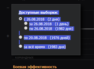 Привет всем, у меня вопрос по "семафору", хотел посмотреть товарища сколько он сыграл боев за месяц, вот вбил я его НИК впервые, и мне предоставлен выбор, http://cdn-frm-eu.wargaming.net/wot/ru/uploads/monthly_08_2018/post-3573950-0-87262000-1535354235_thumb.png хотел бы все таки самому задавать выборку за какой период я хочу посмотреть, того или иного игрока, возможно ли это вообще, заранее спасибо если поступит ответ )))