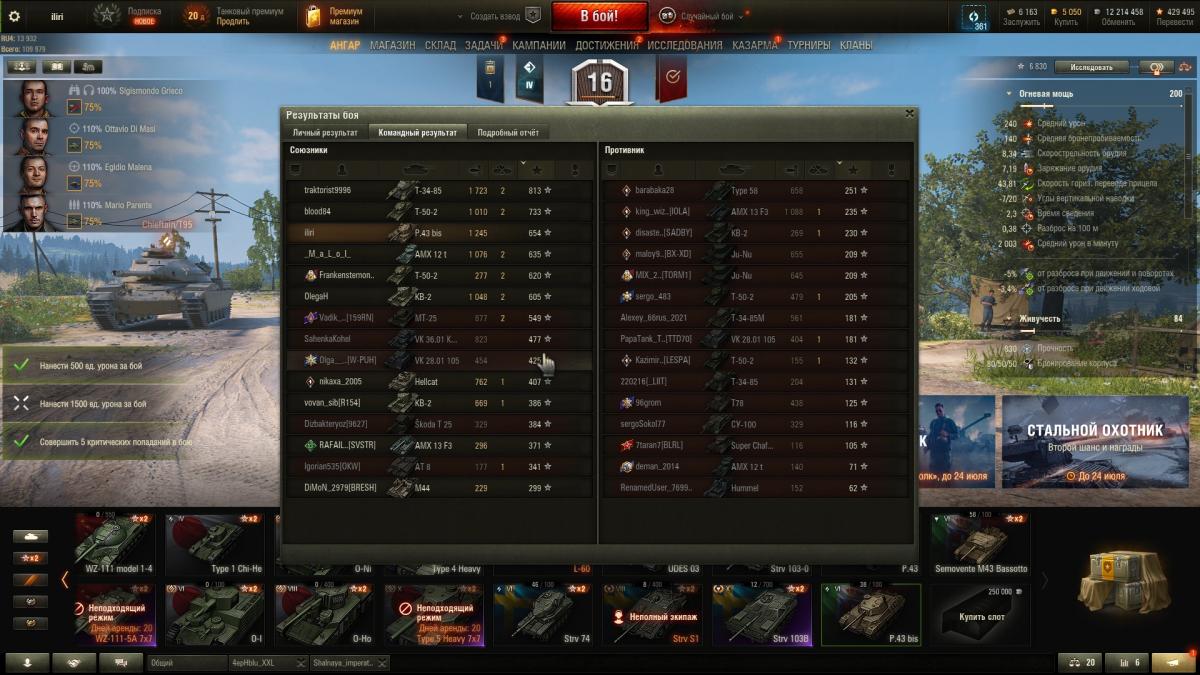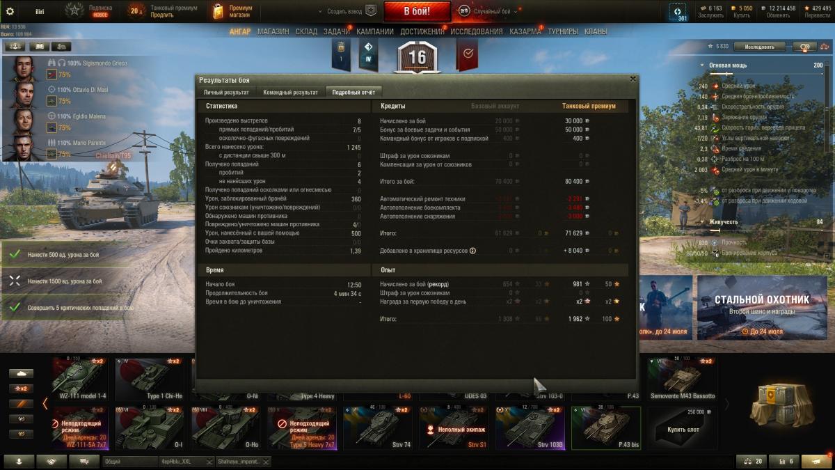Здравствуйте, разработчики! После ПОБЕДНОГО боя, выполненного на технике: P.43 bis, за считалось только одно задание - первое стандартное, на нанесение 500 урона, а вторая премиум задача - "Победить и попасть, в топ 5 игроков по урону", не за считалась! Хотя я победил и и вошел не то, что в топ 5, я вошел в топ 2 по урону. Скриншоты прилагаю. Сама по себе ситуация, с не за считыванием и так, излишне сложных ЕБЗ - считаю просто недопустимым!!! Разберитесь пожалуйста. Заранее благодарен.