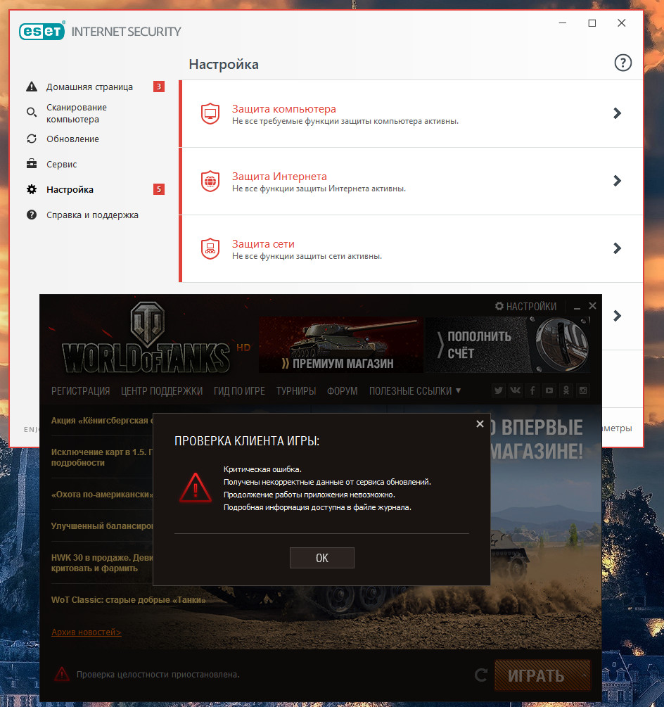 http://cdn-frm-eu.wargaming.net/4.5/style_images/wg/snapback.pngkoljan_86 (04 Апр 2019 - 19:14) писал: Запустите лаунчер игры, затем настройки , затем Обновление там увидите строку порт для входящих соединений по умолчанию стоит на 6881 измените его на 6880 и перезапустите лаунчер обязательно , проверьте актуальность проблемы Попробуйте создать новую учетную запись пользователя Windows с правами администратора, если не поможет, попробуете временно удалить антивирусное ПО (если оно есть). Вы это серьезно? Проще эту игру удалить. До этой обновы никаких проблем не было.