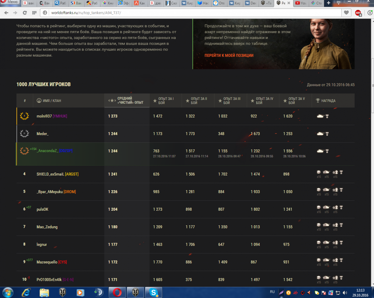 http://cdn-frm-eu.wargaming.net/wot/ru/uploads/monthly_11_2016/post-3584747-0-68312000-1479147068_thumb.png Дело в том что я уже отыгрывал первый бой и на всякий случай даже шестой бой с гораздо лучшим результатом чем в первом бою из серии вошедшей в результаты на сайте. Но проблема в том что на сайте ничего не меняется как был первый бой провальным так и остаётся. Я уже не понимаю как изменить результаты первого боя. Очень обидно так как даже с заурядным боем на 1000 единиц опыта за первую игру я мог бы находиться на первом месте. Извиняюсь за то что задаю практически тот же вопрос во второй раз. И хочу заметить, вдруг это важно. Я концентрировался только на первом и 6 боях для изменения результата а бои между ними были с невысоким опытом возможно это как то связано с тем что результат первого боя не меняется. Спасибо за внимание!