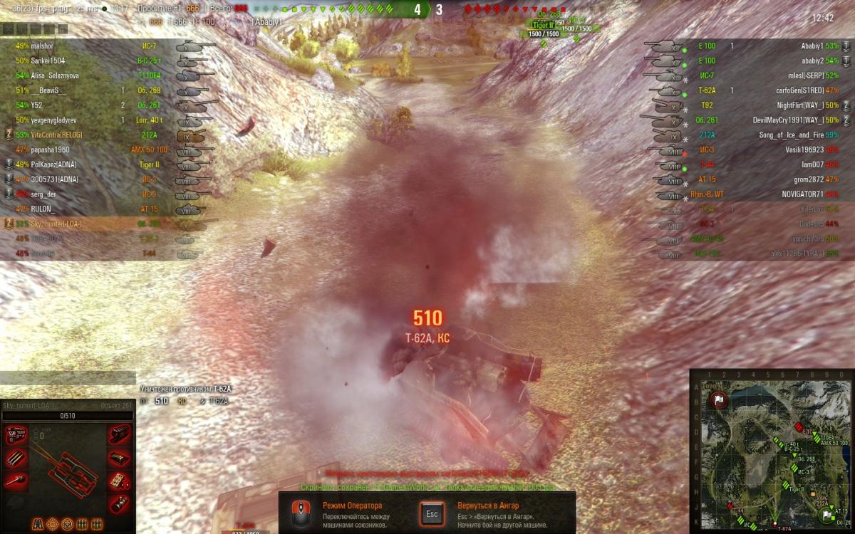 Столкнулся с таким моментом: на арте 261 получил ваншот от ст10 т-62а (стрелял он голодой практически в упор). Реплей имеется. БК взорван не был. Собственно вопрос: как он смог нанести за выстрел 510 дамага (при альфе в 320 и максимальном уроне за выстрел 320+25%=400)? Это баг, ошибка или я чего то не знаю? Вот реплей на этот бой. время 12.50 http://wotreplays.ru/site/2025357#pereval-sky_hunter-ob_ekt_261
