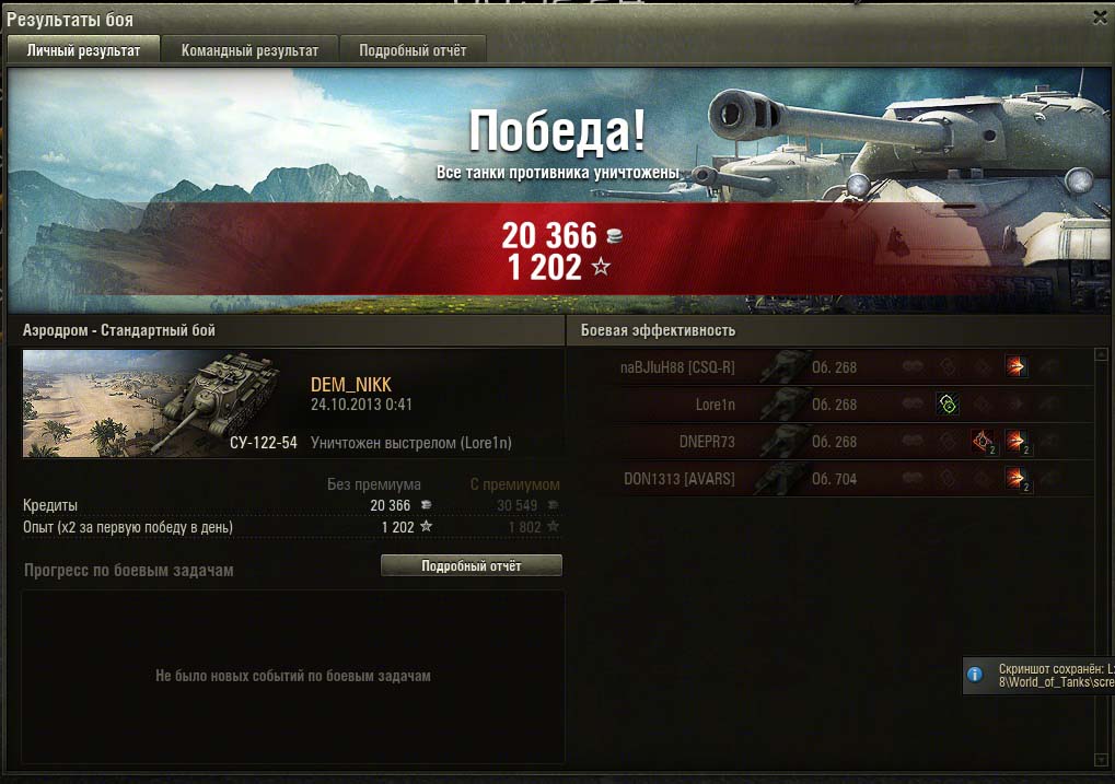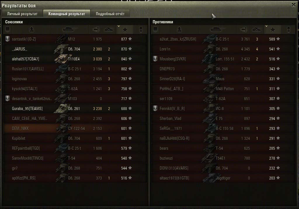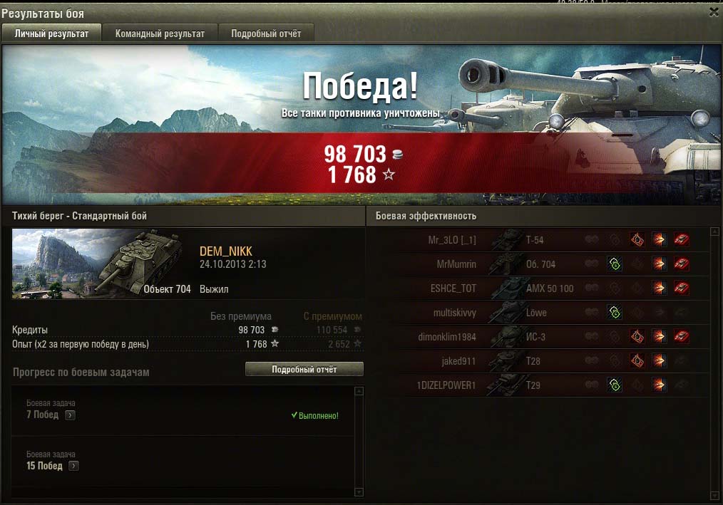 Приветствую. Немного не понятно. Победа в бою на СУ-122-54. Попадаю в топ 10 по опыту(на 10 месте), следующий за мной Об.704 набирает ровно столько же опыта. Бой в акцию не вошёл. Так и должно быть? http://cdn-frm-eu.wargaming.net/wot/ru/uploads/monthly_10_2013/post-3531052-0-82546100-1382562650_thumb.jpg http://cdn-frm-eu.wargaming.net/wot/ru/uploads/monthly_10_2013/post-3531052-0-93906200-1382562660_thumb.jpg