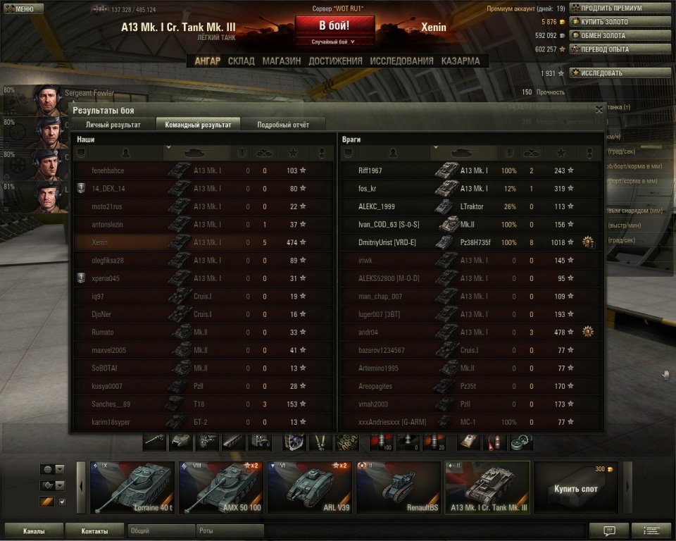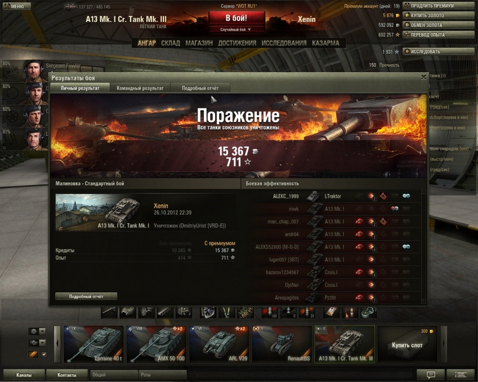 Уважаемые разработчики, а почему вы решили, что выдавать знаки классности надо только за победы. Как я понимаю начисление опыта за труды в бою не зависит от исхода, а только по итогу боя умножается на соответствующий коэффициент. Дык неужели игрок настрелявший 10 фрагов и не победивший по причине: не успел зарядиться, не хватило ХП, не пробил или пробил без урона еле живого врага, а самое страшное прилип прицел из-за лага!!!!, не имеет право на получение знака классности и соответствующего звания. Я упарился получать мастера на КВ-2, Если побеждаем, то я просто не успеваю, если проигрываем то тяну сколько могу, но не вытягивал из-за медлительности и размеров. . Но свою тыщщу в поражении получал. А значит, я думаю, было бы 2 к. при победе и был бы мастер. Но это же не знак "мастер победы", это знак мастерства игрока на танке и вбр ему тут не в помощь. Вот, я считаю, наглядный пример достойный получения "Мастера". При любом раскладе было бы очень трудно разобрать pz38H735f, даже один на один.