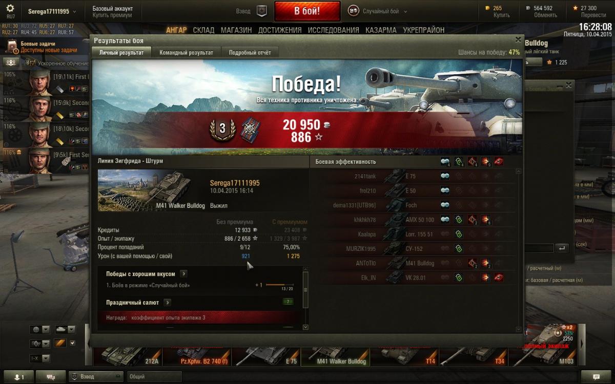 Вот так) 16 бой очень напряженный на последней минуте меня с вертухи снимает гиви - спасибо лорику убил бата