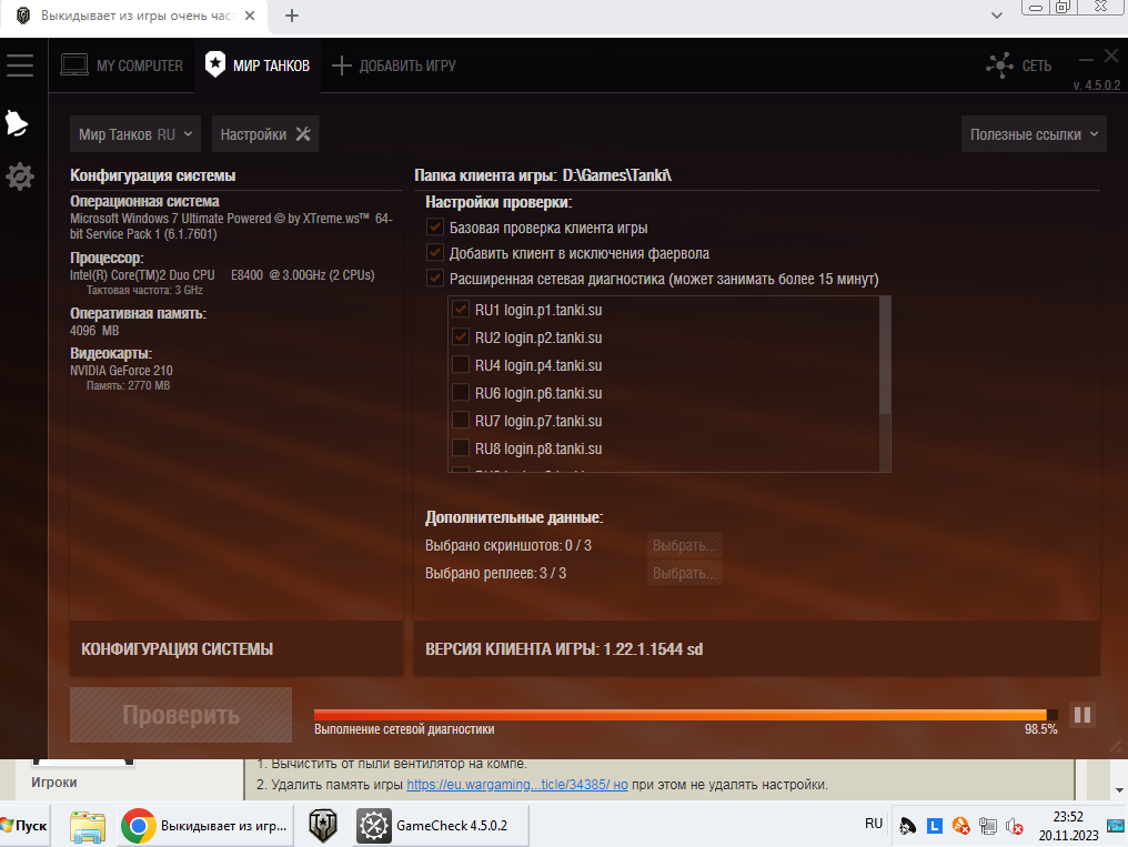 Уже проверил - тоже не помогает - два боя сыграл нормально, а при посадке члена экипажа для третьего боя вылетел клиент. И так постоянно, то при выходе из боя , то при пересадке обычно. Играл ща без модпака , с восстановленной игрой, только твикер стоит, так как комп слабенький. Походу пипец моим танкам. Придётся попрощаться с танками походу, нервы важнее