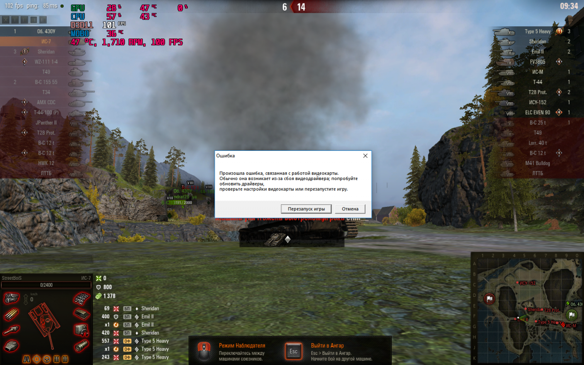 еще вот тема подобная,толку ноль! в лички спрашивал ,никто не победил пока что , http://forum.worldoftanks.ru/index.php?/topic/1976208-произошла-ошибка-связанная-с-работой-видеокар/#topmost