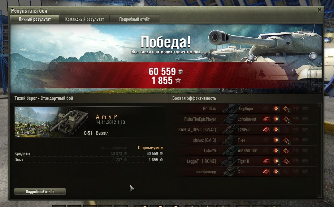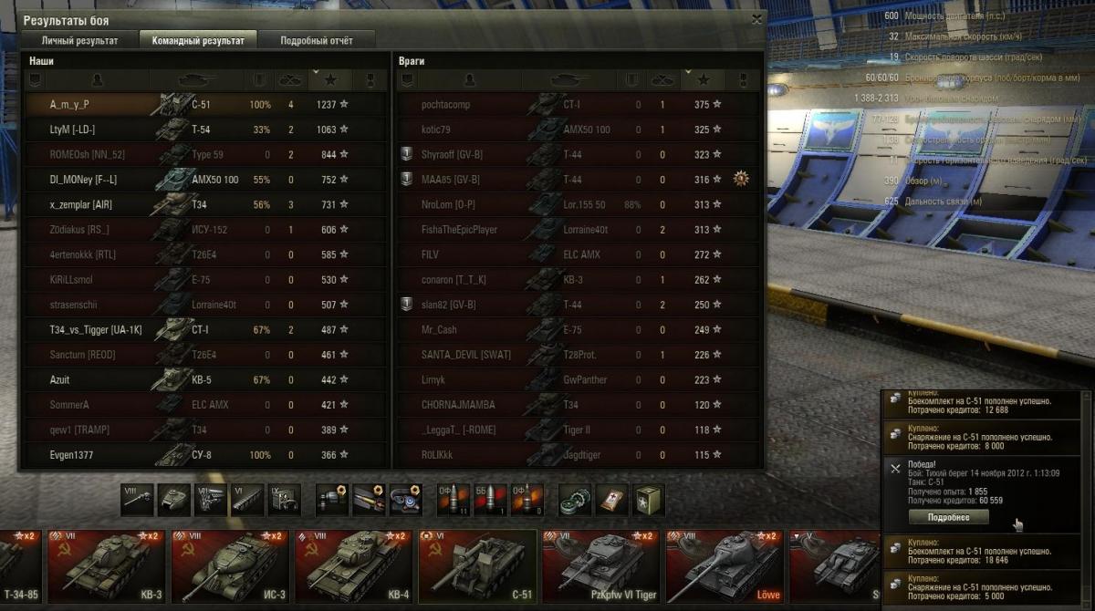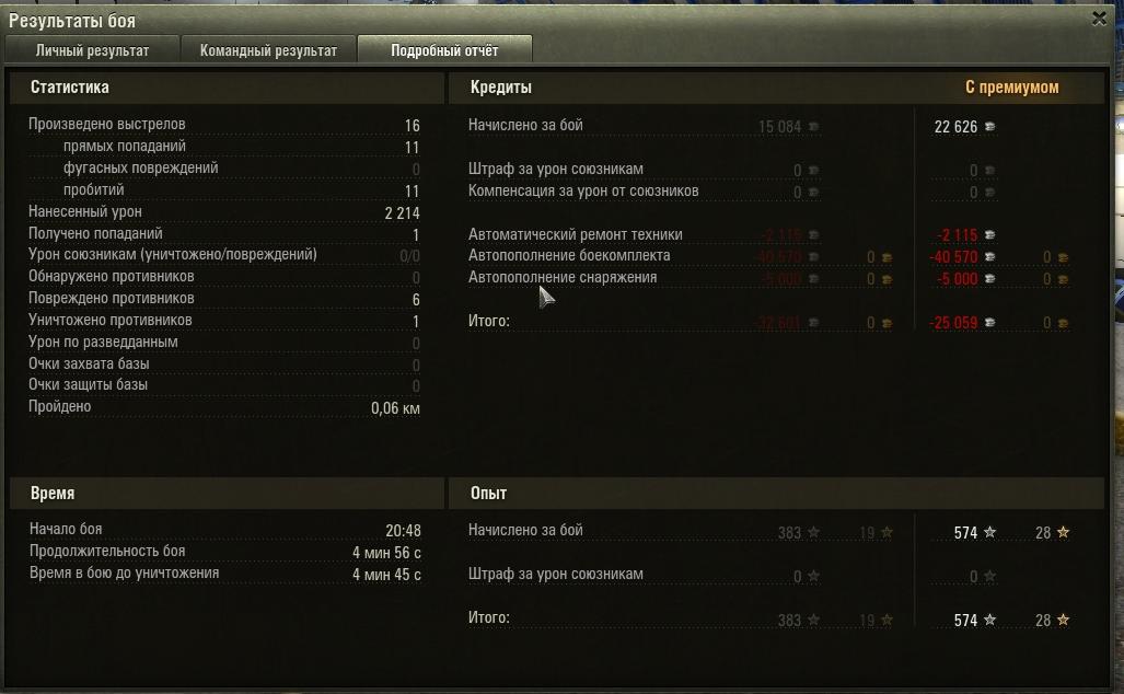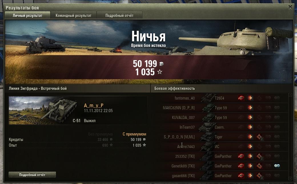 САУ С51 Ничья\Проигрыш Опыт: без ПА - 640, с ПА - 1035. Кредиты: без ПА - 33466, с ПА - 50199. http://cdn-frm-eu.wargaming.net/wot/ru/uploads/monthly_11_2012/post-3595660-0-47230600-1352842842_thumb.jpg http://cdn-frm-eu.wargaming.net/wot/ru/uploads/monthly_11_2012/post-3595660-0-45490200-1352843005_thumb.jpg Победа Опыт: без ПА - 1237, с ПА - 1855. Кредиты: без ПА - 40373, с ПА - 60559. http://cdn-frm-eu.wargaming.net/wot/ru/uploads/monthly_11_2012/post-3595660-0-22569600-1352843717_thumb.jpg http://cdn-frm-eu.wargaming.net/wot/ru/uploads/monthly_11_2012/post-3595660-0-85690400-1352843814_thumb.jpg http://cdn-frm-eu.wargaming.net/wot/ru/uploads/monthly_11_2012/post-3595660-0-88784600-1352843963_thumb.jpg PS. Скрины пришлось обрезать т.к. в игре ПринтСкрин не работает и "фоткаю" программой Hot Key Screenshot, которая делает очень большой снимок + большие белые поля. Если нужны не обрезанные, заменю.