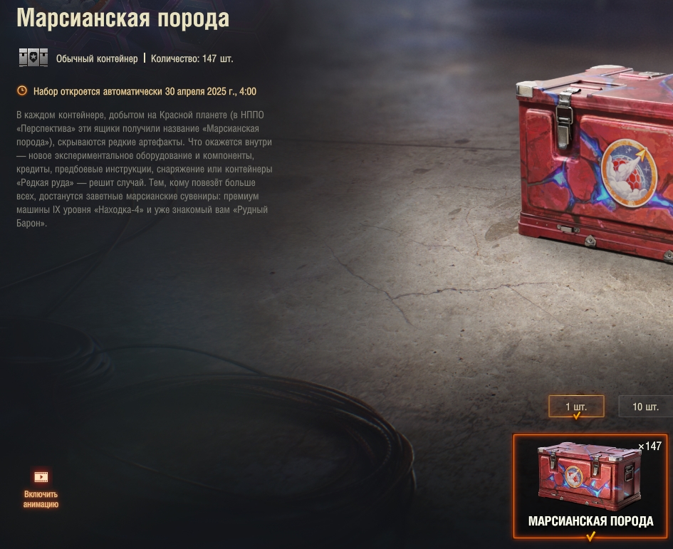 *Контейнеры откроются автоматически:4 мая - 03:00 МСК - (марсианская порода)6 мая - 03:00 МСК - (редкая руда)В клиенте игры написано, что *Контейнеры откроются автоматически:30 апреля - 04:00 МСК - (марсианская порода).Так где правильная инфа про автоматическое открытие контейнеров с Марса?