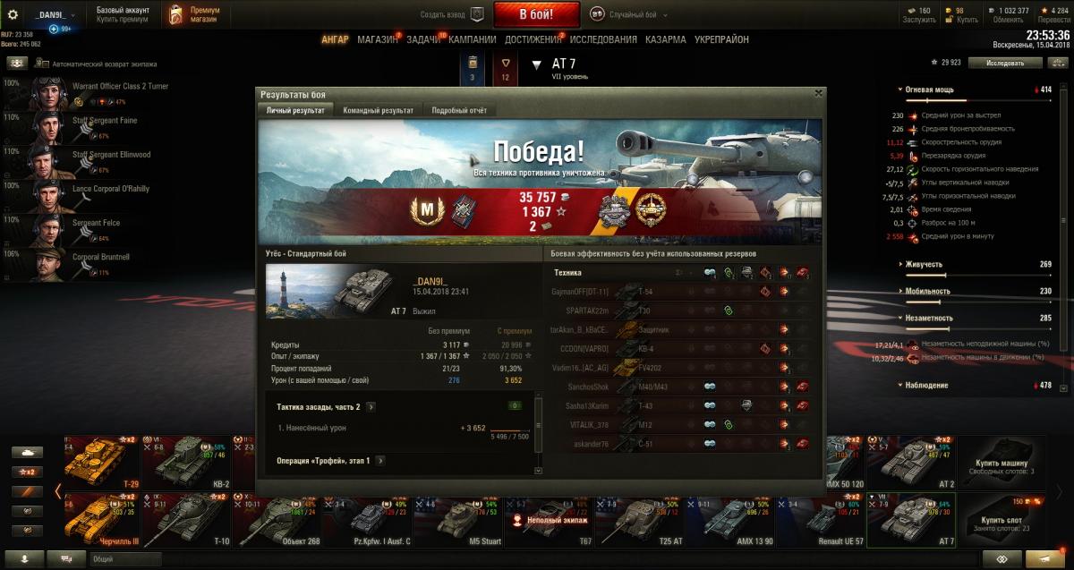 Машина на мой взгляд очень интересная, расположение пушки над гуслёй - интересное решение, из-за домов, каких-то камней очень удобно выкатываться, хотя иногда и не выкатишься. Компромисс так сказать. Иногда ты нагибаешь (если нет упорантов) иногда нет=) Пушка мне понравилась, всё нормально. Единственное, хотелось бы чтобы она ехала чуть побыстрее, 26 км\ч максималки достаточно чтобы доехать до позиции, пострелять, задефить базу иногда. Ну не хватает 20кмч, либо я не доезжаю до мяса и команда вся слита, а затем меня каруселят и всячески унижают; либо не успеваю набивать дамаг, т.к. команда всё делает за меня. Аналогичный случай с АТ-2, ат-8. Ну добавьте скорости ат-7, 7лвл всё таки, уровень выше, броня кстати хуже в сравнении с геймплеем на 5-6 уровнях. 20кмч хватает т95, маусу например. А здесь нет. Мне ат-2 зашёл, очень весёлая машина, хотя есть недостаток по поводу динамики. за 170 боёв 60% побед, 470 среднего, две отметки.. В целом ветка очень нравится, всё хочу тортиллу закачать=) упд: ребята, танк не для стоялова! Против арты помогает подбой и вперёд!
