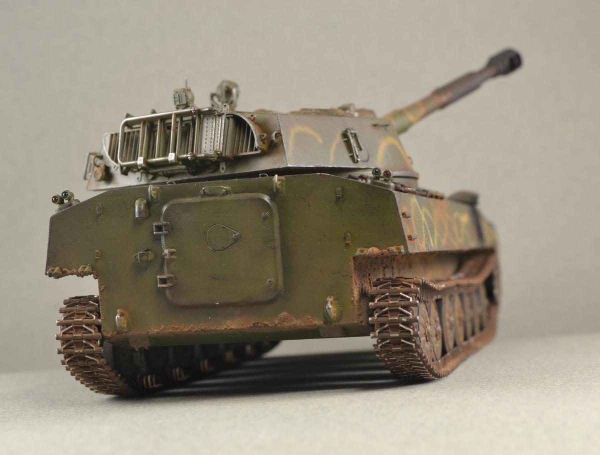Плюсанул. Но над моделью можно было еще поработать. Добавить смывки, подтеки ГСМ сделать на катках и моторной плите. И след от выхлопа удлинил бы вниз и на доп. баки немного нанес. И сверху если смотреть, то создается впечатление что модель пыльная.....а возле люков протерли. Ну в общем очень неплохо.