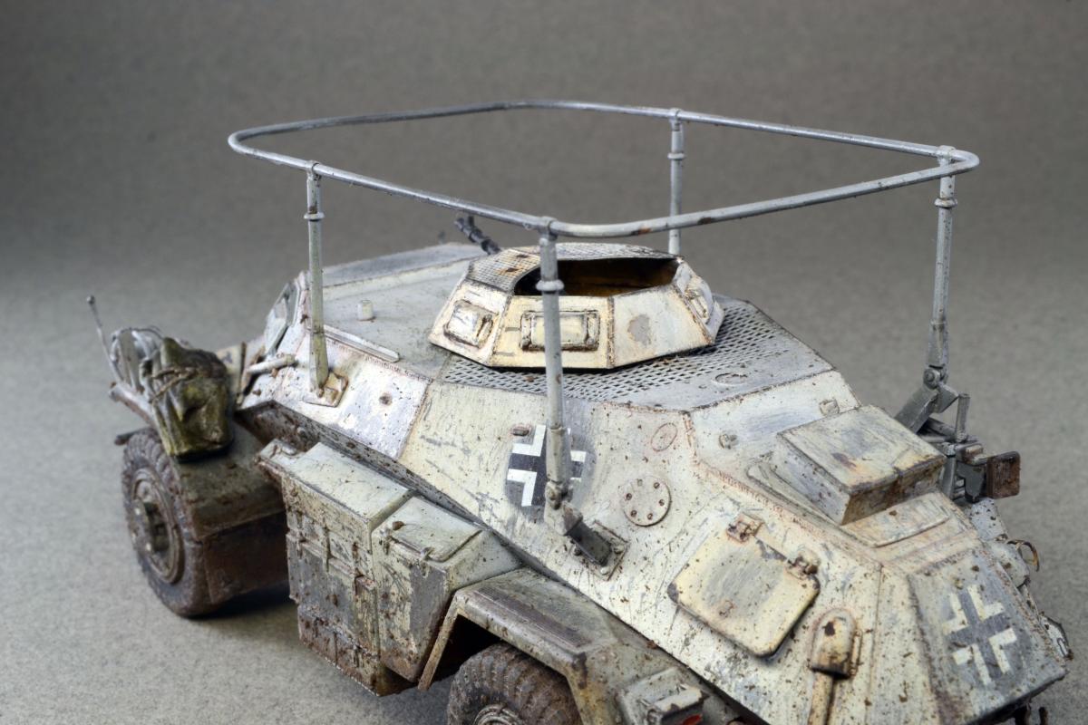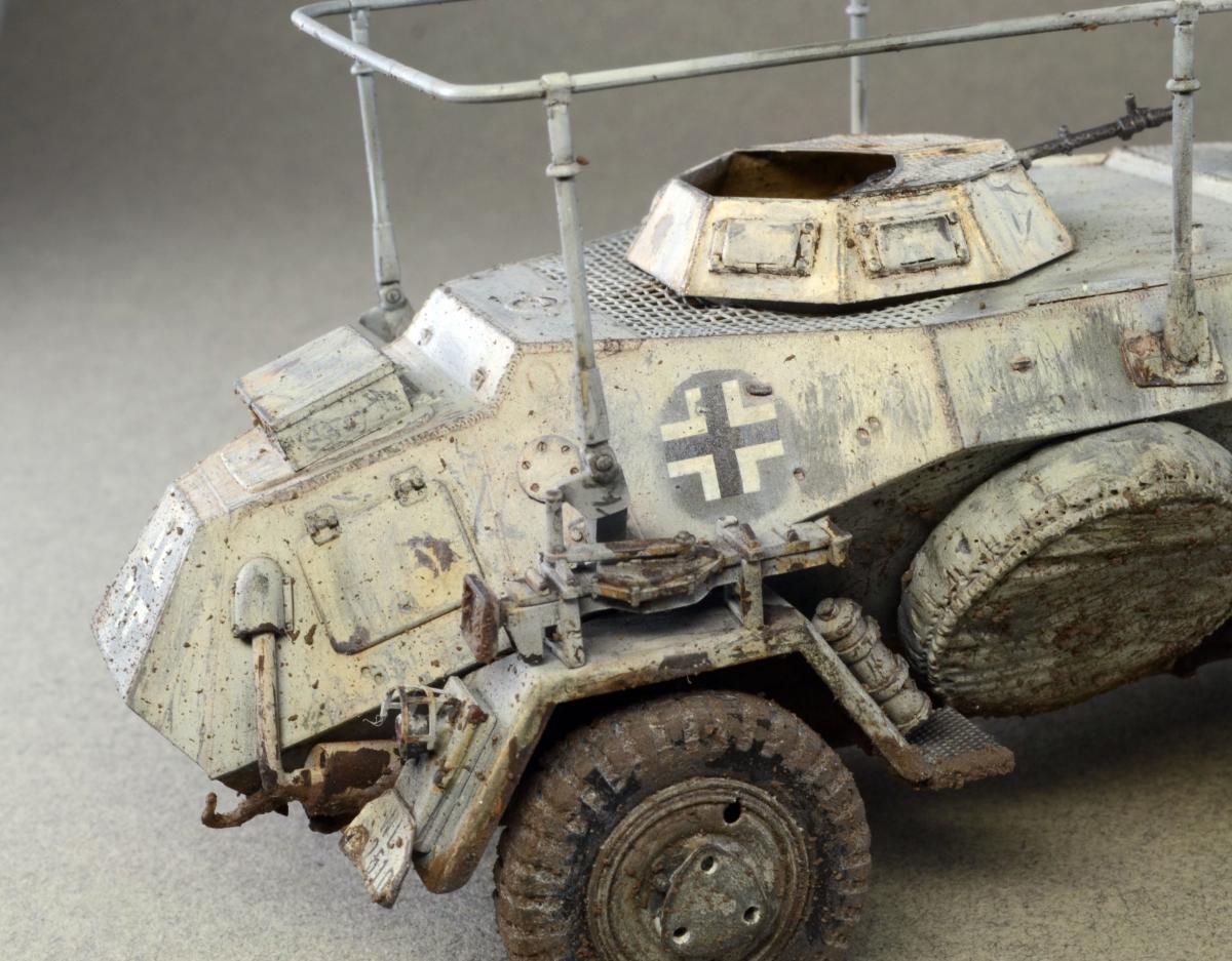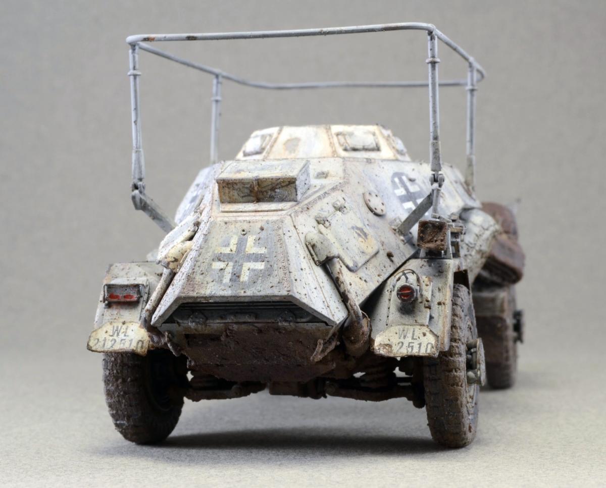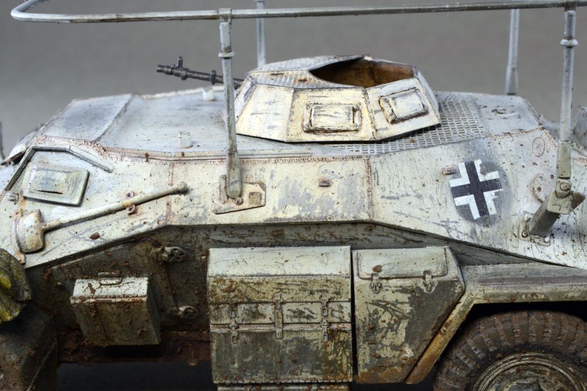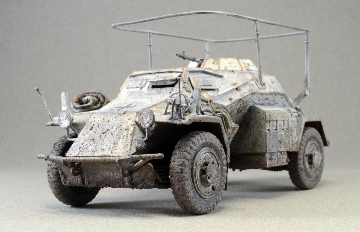 Разрешите представить сообществу свою модель. Немного истории: Leichter Panzerspähwagen, Sd.Kfz.223 — германский лёгкий бронеавтомобиль бронеавтомобиль разведки связи. Разработан фирмой Eisenwerken Weserhütte. Серийное производство началось в 1937 году и продолжалось до февраля 1944 года. Модель собрана из коробки, впервые был опробован зимний камуфляж. Машина примерно на конец зимы-начало весны. Спасибо за внимание.